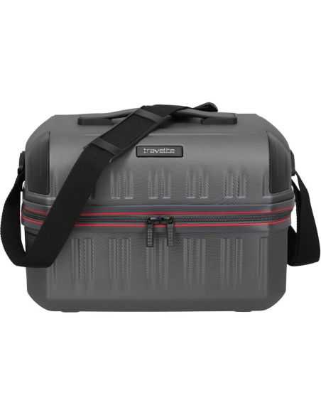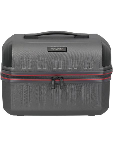 Travelite Dynamiic Beautycase in antraciet biedt een stevige en praktische oplossing voor het meenemen van cosmetica en persoonlijke verzorgingsartikelen tijdens elke reis. Strak vormgegeven met een moderne uitstraling en een harde buitenkant die goed bestand is tegen krassen en stoten, zodat de inhoud betrouwbaar beschermd blijft. Binnenin bevindt zich een overzichtelijke indeling met meerdere steekvakken en ritsvakken waardoor make up, verzorgingsproducten en accessoires netjes gescheiden kunnen worden opgeborgen. Zo ontstaat er rust en overzicht, zelfs wanneer de beautycase intensief wordt gebruikt tijdens korte trips of langere vakanties.