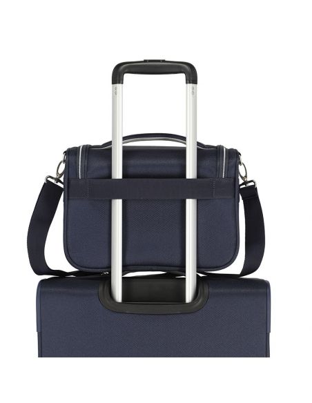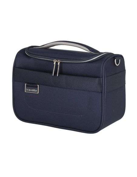 De Travelite Miigo Beautycase Navy biedt een overvloed aan opbergmogelijkheden tegen een aantrekkelijke prijs. Het interieur van de beautycase herbergt een ruim hoofdcompartiment dat gemakkelijk toegankelijk is dankzij de ritssluiting. Aan de buitenzijde is een afneembare schouderband bevestigd voor extra draaggemak, terwijl de achterzijde beschikt over een slimme sleeve waarmee de beautycase moeiteloos aan de trekstang van een koffer kan worden bevestigd.