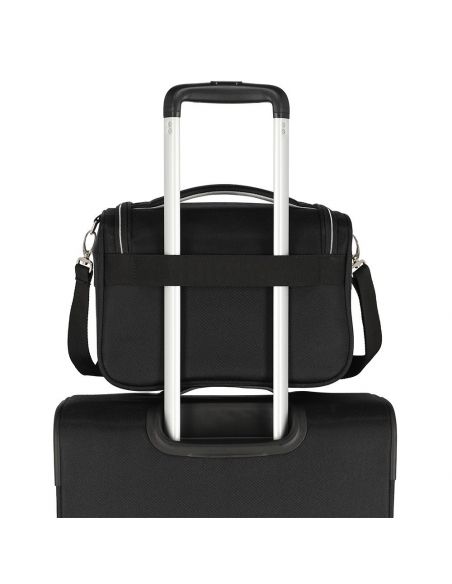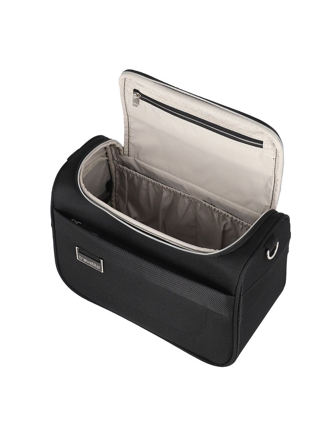 De Travelite Miigo Beautycase Zwart biedt een overvloed aan opbergmogelijkheden tegen een aantrekkelijke prijs. Het interieur van de beautycase herbergt een ruim hoofdcompartiment dat gemakkelijk toegankelijk is dankzij de ritssluiting. Aan de buitenzijde is een afneembare schouderband bevestigd voor extra draaggemak, terwijl de achterzijde beschikt over een slimme sleeve waarmee de beautycase moeiteloos aan de trekstang van een koffer kan worden bevestigd.