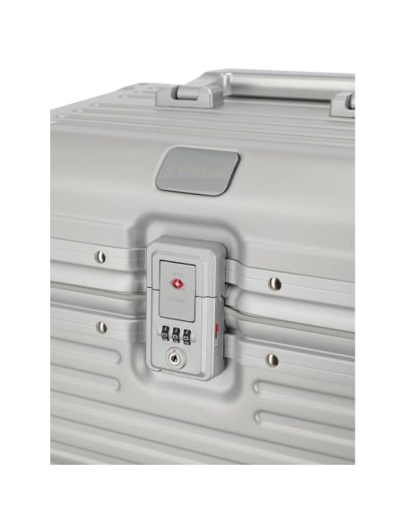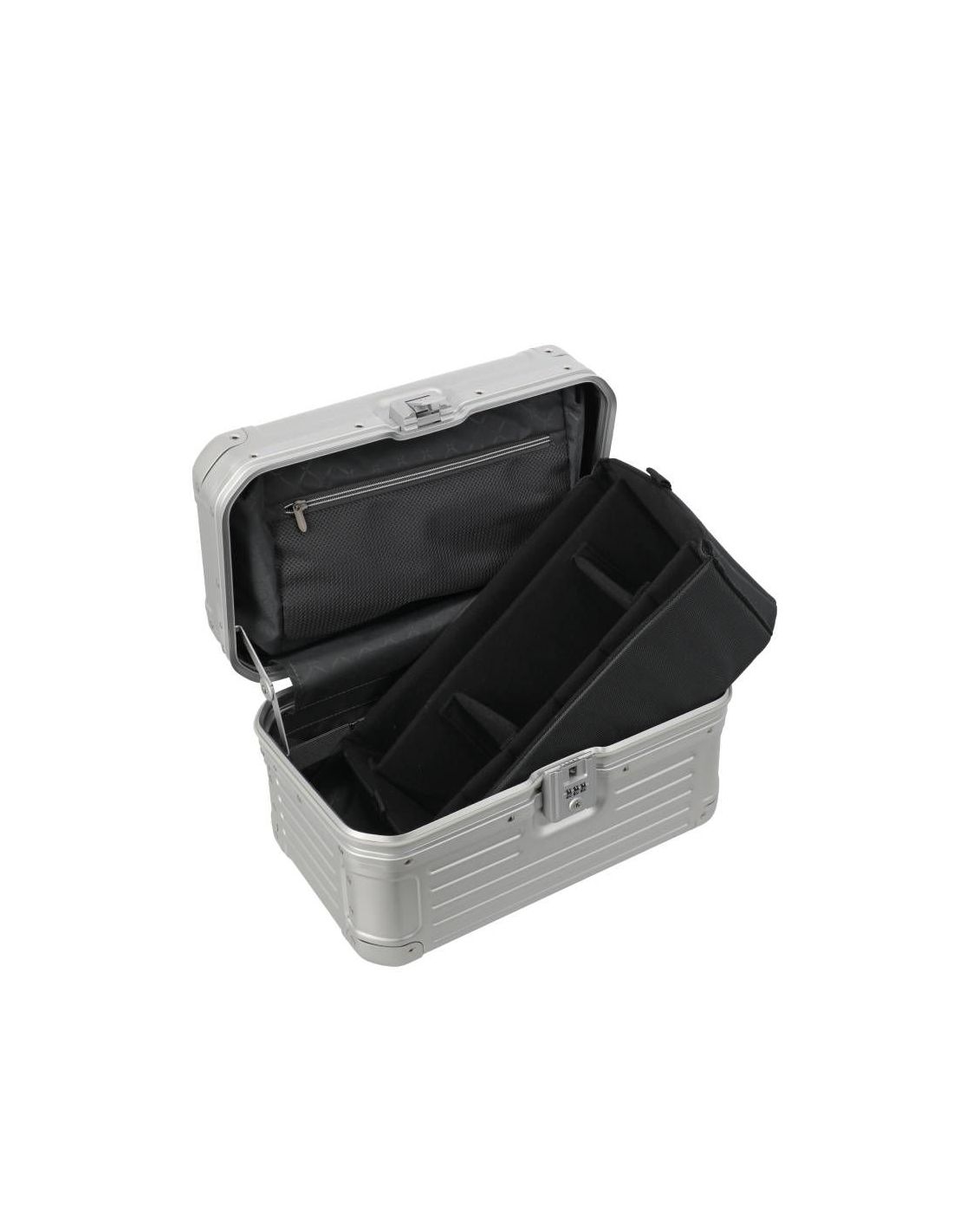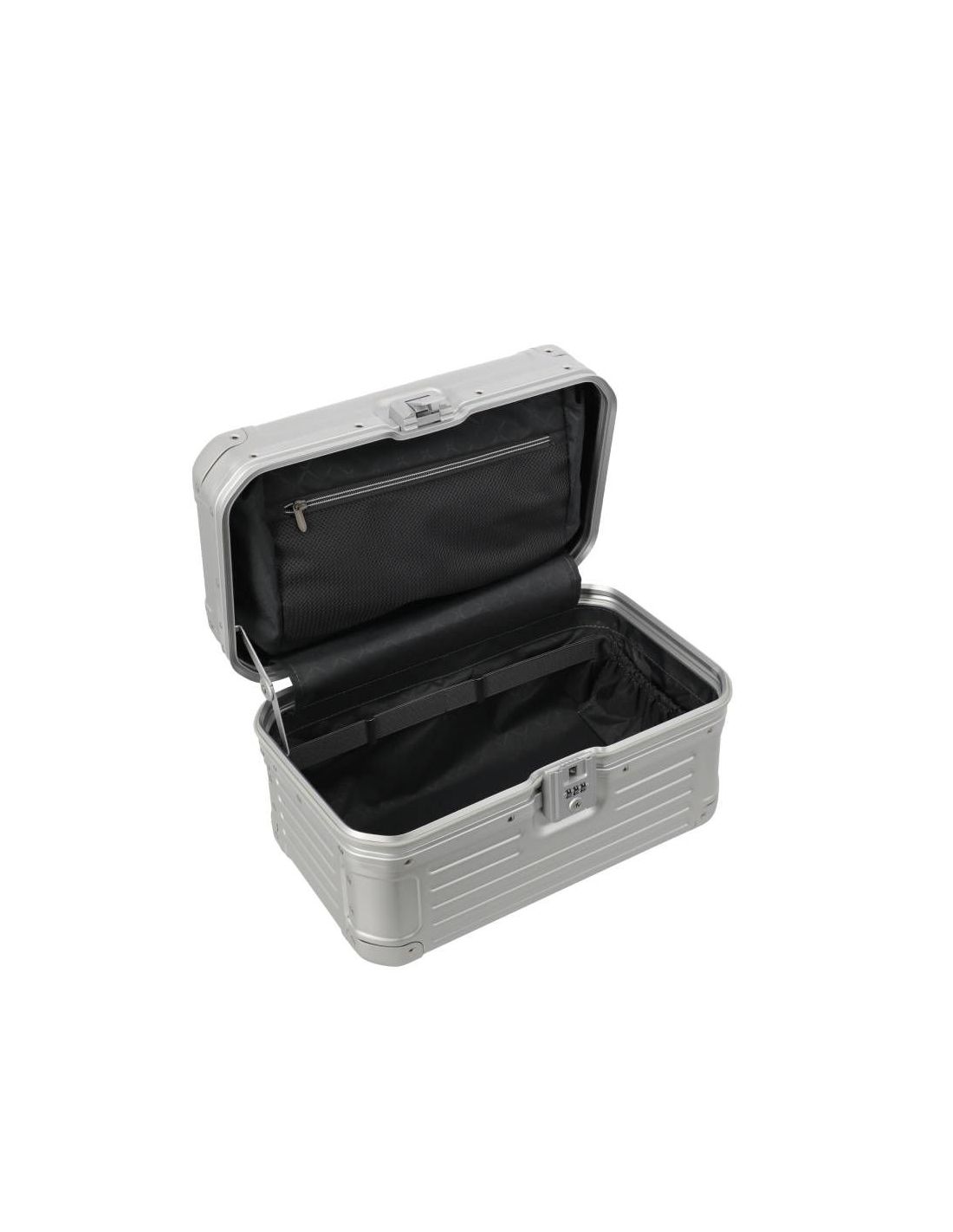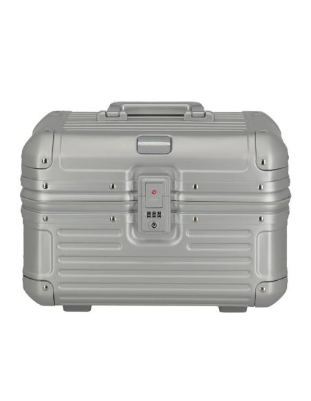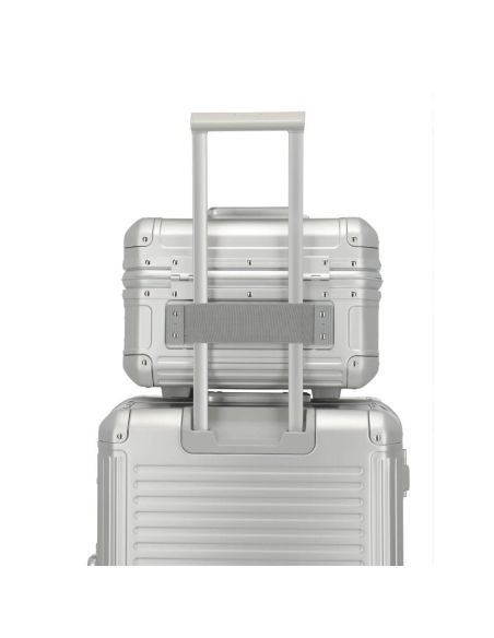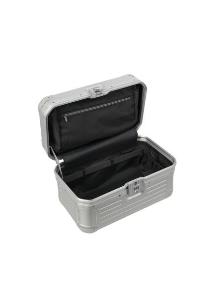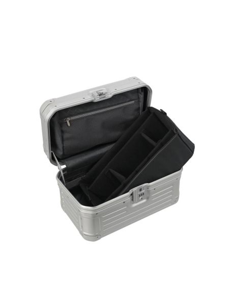 De beautycase is voorzien van een klemsluiting met een TSA-slot voor extra veiligheid. Bij het openen ontvouwt zich een doordacht ontworpen interieur met een ritsvak, diverse insteekvakken en een elastiekenband om lotions of parfum handig vast te zetten. Het uitneembare gedeelte fungeert als een organizer, waardoor je al je essentiële items geordend en overzichtelijk kunt opbergen. Hierdoor draag je al je benodigdheden met stijl en organisatie met je mee.