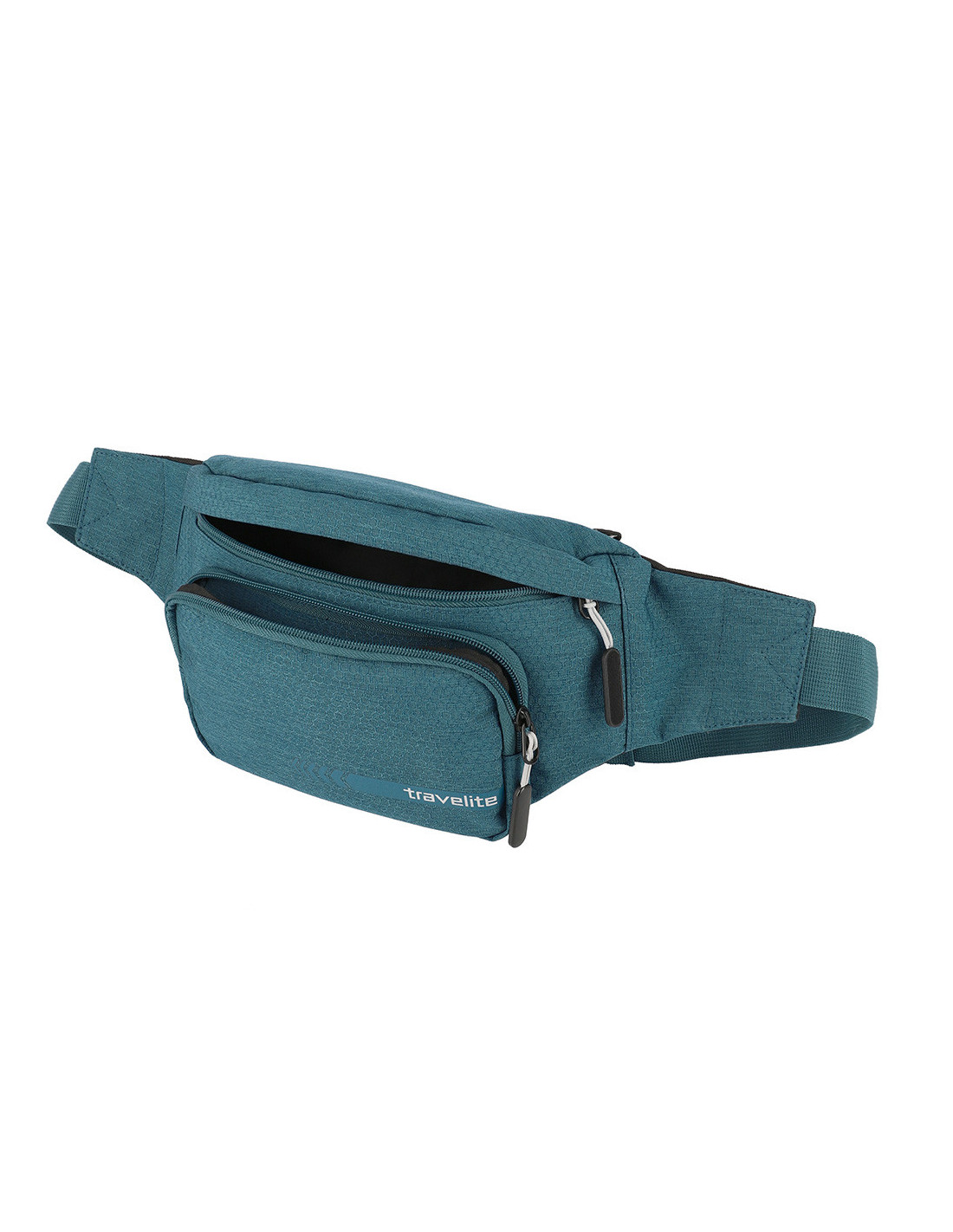 De Travelite Kick Off Heuptas in de kleur Petrol Blauw is een trendy en handige heuptas, perfect geschikt voor diverse gelegenheden, zoals op vakantie of als festival heuptasje. Deze heuptas van Travelite beschikt over twee ruime hoofdvakken met een gezamenlijke inhoud van 5 liter, die eenvoudig kunnen worden afgesloten met een rits. De verstelbare heupband zorgt voor comfortabele draagmogelijkheden en maakt de tas aanpasbaar aan verschillende lichaamsmaten.
