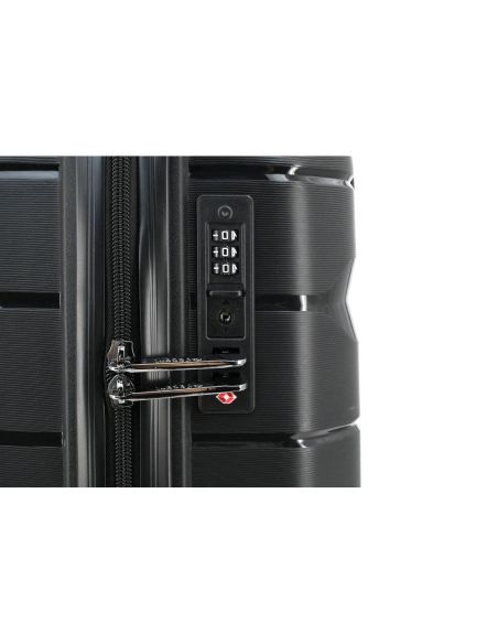 Voor extra veiligheid is de koffer voorzien van een ingebouwd TSA-cijferslot. Dit slot voldoet aan de internationale veiligheidsnormen en is geschikt voor vliegreizen naar onder andere de Verenigde Staten. De stevige ritsen sluiten goed af en zorgen voor een betrouwbare afsluiting van het hoofdcompartiment. De