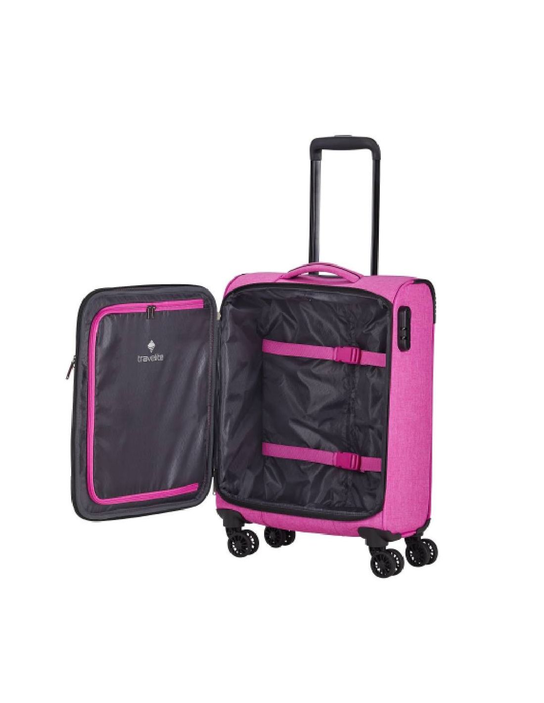 De Travelite Adria Trolley is geschikt als zowel reis- als zakelijke koffer en kan dankzij de vier 360-graden wielen, de meermaals verstelbare trekstang en de handgrepen in elke situatie comfortabel worden vervoerd. Voor de meegebrachte reisbenodigdheden biedt de zachte koffer een ruime voorzak met ritssluiting en een hoofdvak met geïntegreerde pakriemen en een apart vak voor overhemden of wasgoed.