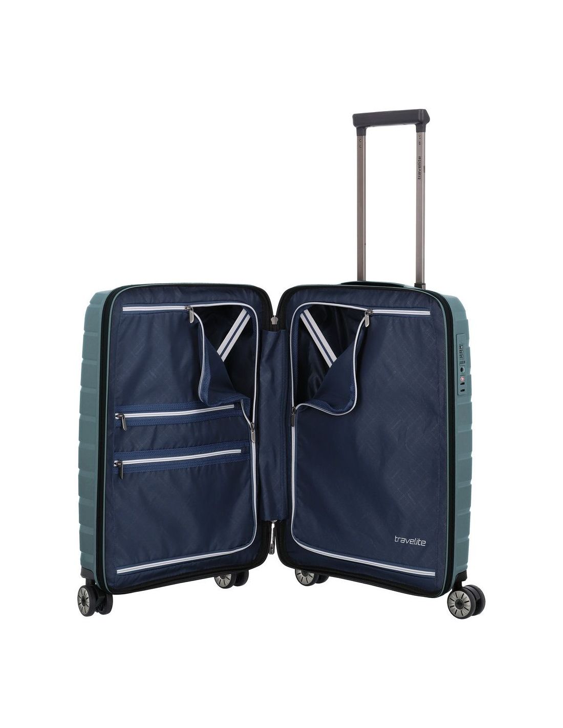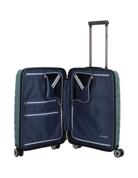 De Travelite Air Base handbagagekofferserie van 55 cm onderscheidt zich als een buitengewoon robuuste en lichtgewicht reeks koffers. Gemaakt van duurzaam polypropyleen, draagt de Travelite Air Base koffer zijn stevigheid met een opvallend licht gewicht. Het ontwerp omvat twee ruime hoofdcompartimenten met inpakriemen die met een rits kunnen worden afgesloten, waardoor een georganiseerde indeling van je bagage mogelijk is.