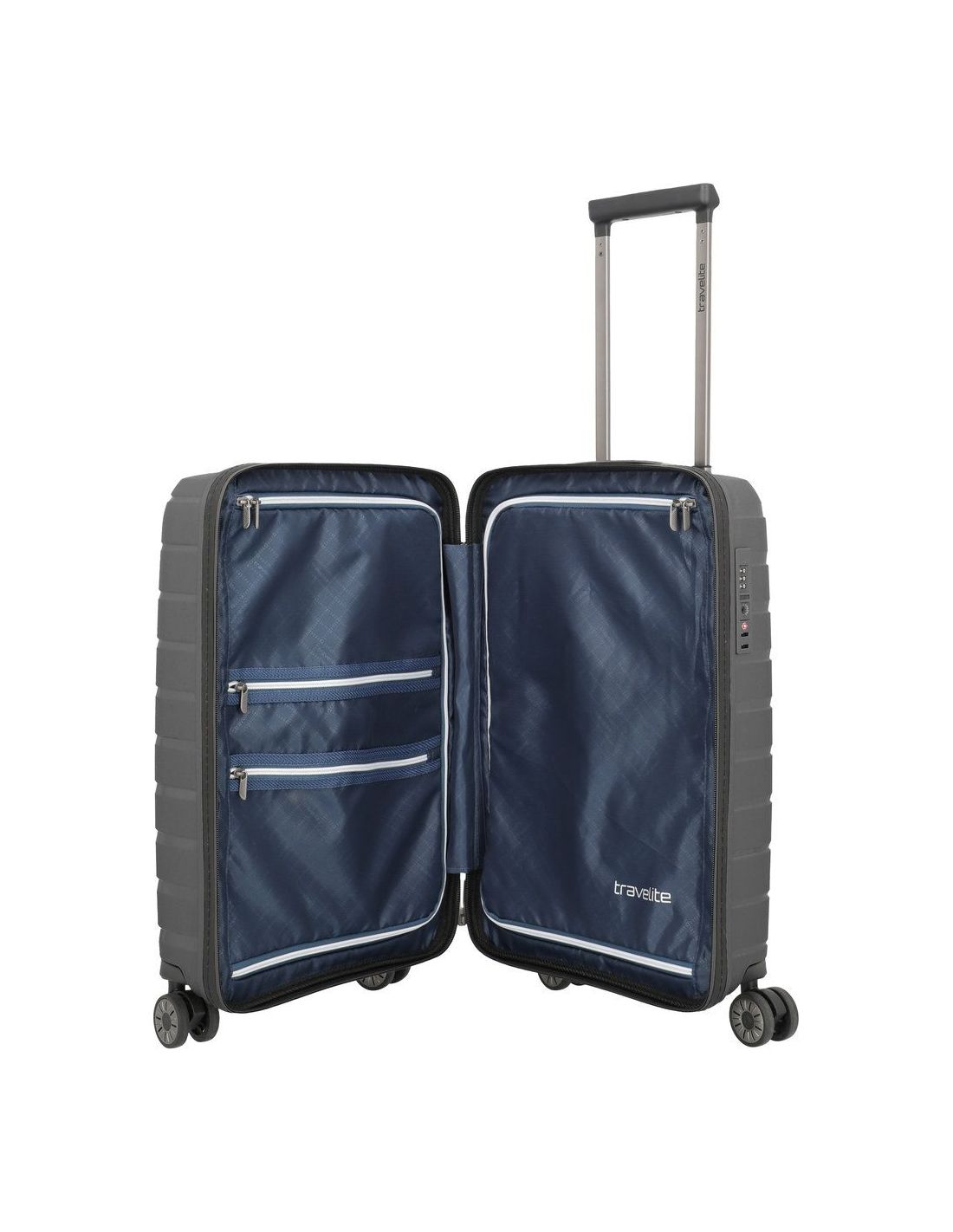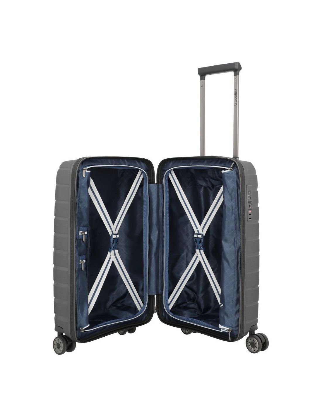 De Travelite Air Base handbagage koffer van 55 cm Slim is ontworpen voor reizigers die waarde hechten aan stevigheid, comfort en een lichtgewicht ontwerp. De koffer is gemaakt van stevig polypropyleen, waardoor hij optimaal bestand is tegen stoten en krassen, terwijl hij toch verrassend licht blijft. Dankzij de doordachte indeling met twee ruime hoofdcompartimenten en inpakriemen, die netjes met een rits afsluitbaar zijn, blijft alle bagage overzichtelijk en goed georganiseerd.