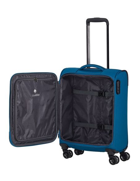 De Travelite Chios 4 Wiel handbagagekoffer Petrol Blauw, met een afmeting van 55 cm, is een uitstekende keuze voor zowel vakantiegangers als zakenreizigers. Het ruime compartiment van de koffer is voorzien van inpakriemen en verschillende ritsvakken aan zowel de binnen- als buitenkant, waardoor je jouw bagage georganiseerd kunt inpakken. De koffer biedt optimaal gebruiksgemak dankzij de vier soepel roterende wielen, de telescopische trekstang en de handvaten aan de boven- en zijkant.