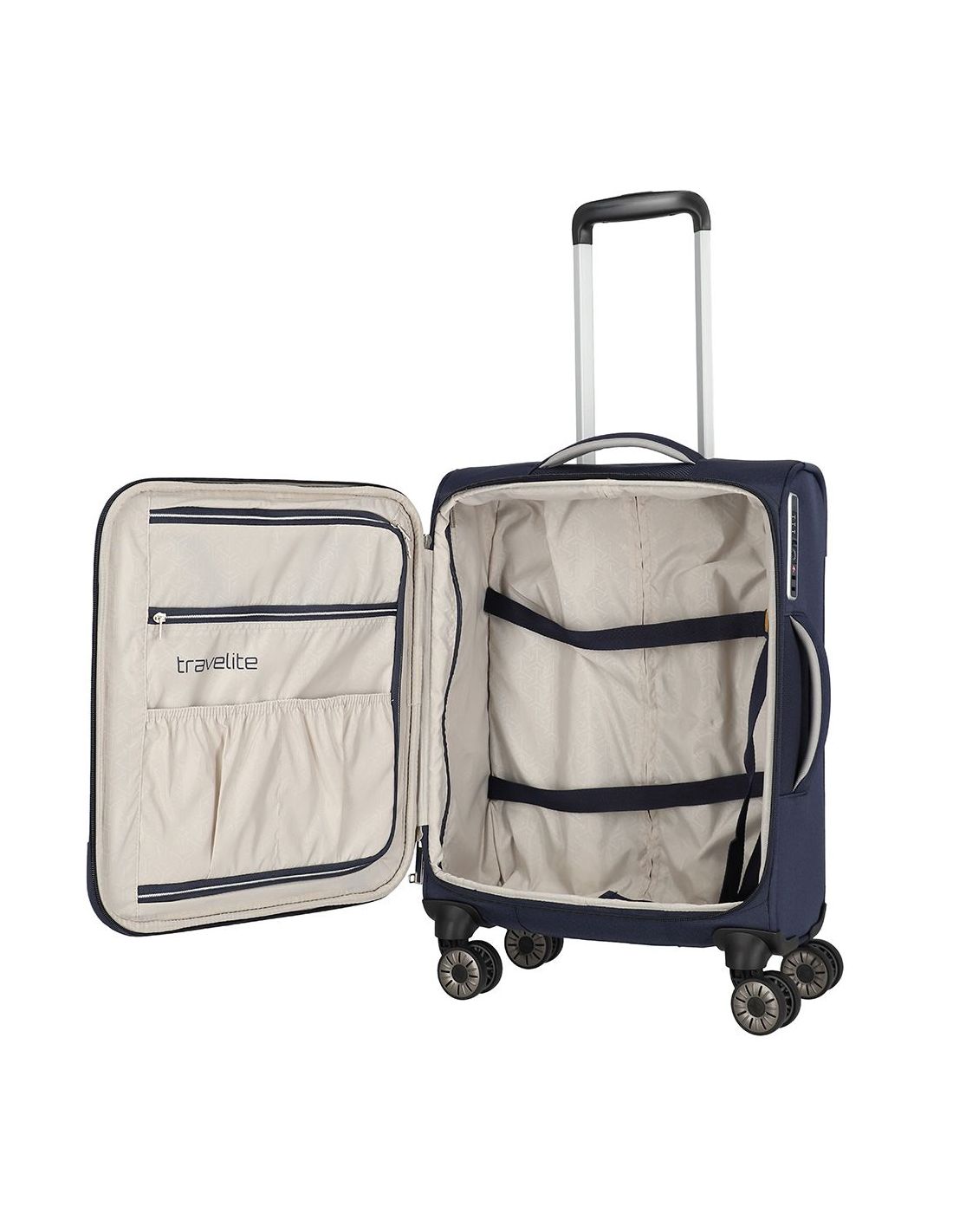 De Travelite Miigo Handbagagekoffer met 4 wielen Blauw combineert een stijlvol ontwerp met voldoende ruimte om al je benodigdheden mee te nemen. Aan de voorzijde van de koffer bevindt zich een handig ritsvak, ideaal voor het opbergen van reisdocumenten of andere belangrijke items. Het hoofdcompartiment van de Travelite Miigo koffer is voorzien van pakriemen om je bagage op zijn plaats te houden, evenals diverse ritsvakken voor georganiseerde opslag.