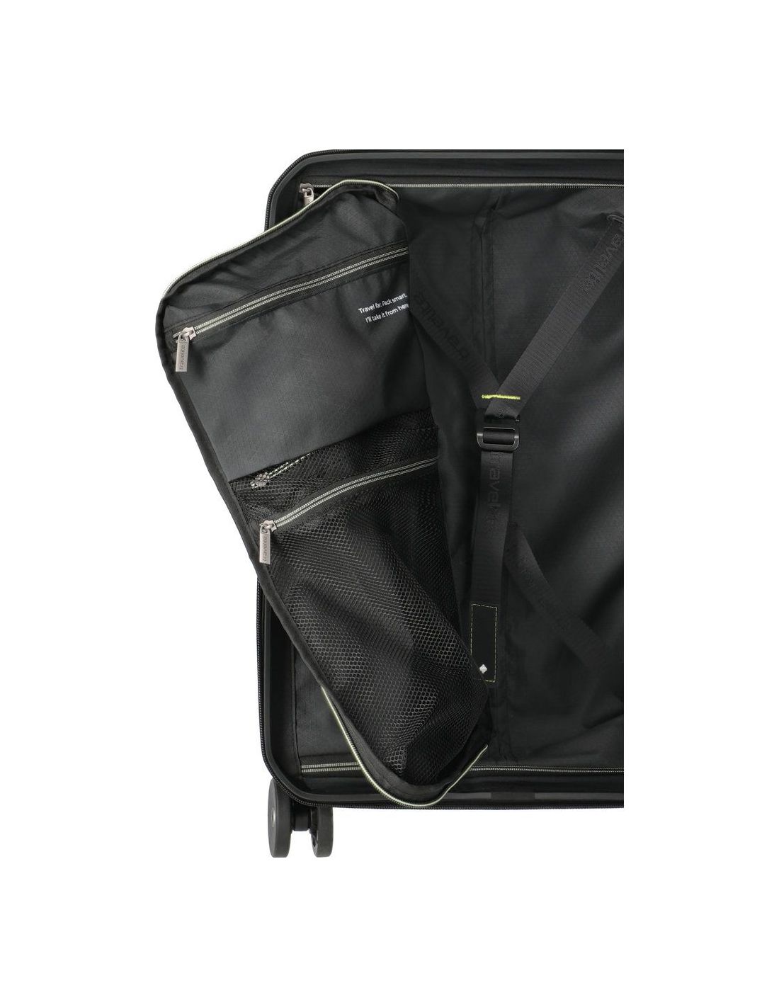 Het overzichtelijke interieur met een inhoud van 37 liter biedt voldoende ruimte voor kleding en reisbenodigdheden voor een korte trip. Twee praktische verdelers zorgen ervoor dat alles netjes op zijn plek blijft, terwijl de binnenzak die vanaf beide zijden toegankelijk is het inpakken extra eenvoudig maakt. Het aparte wasvak maakt het mogelijk om gedragen kleding gescheiden te houden van schone spullen, wat bijdraagt aan orde in de koffer. De binnenvoering van gerecycled polyester is stevig afgewerkt en voelt prettig aan.