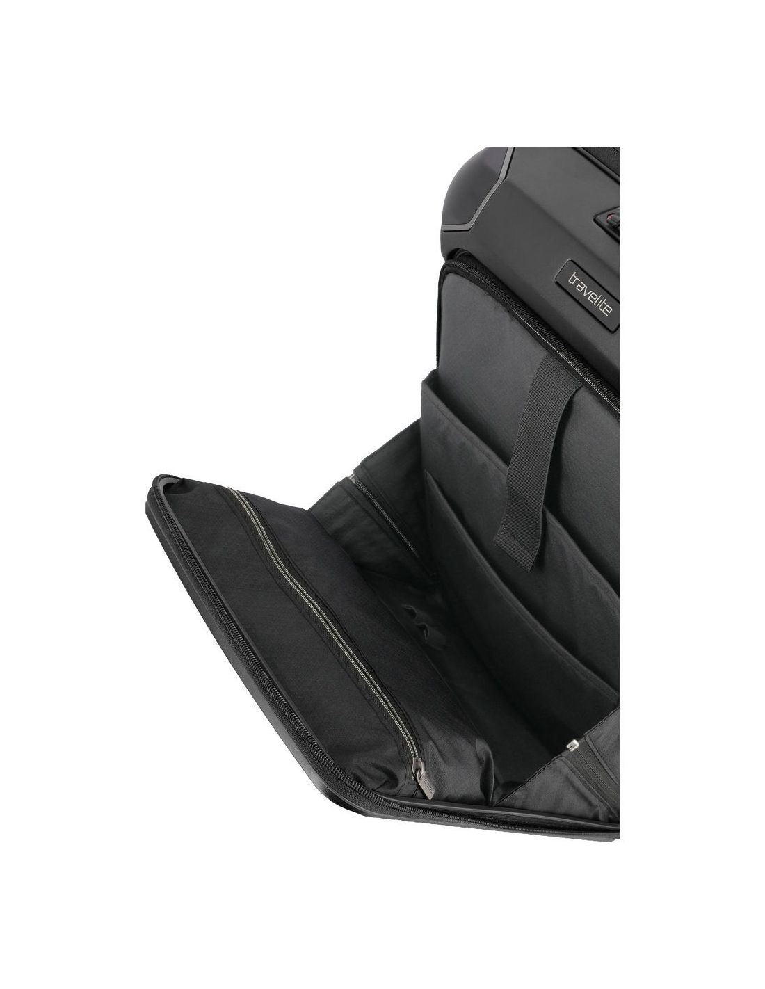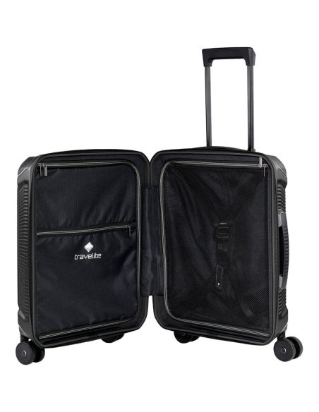 Slim en efficiënt reizen vraagt om een koffer die meedenkt met iedere stap onderweg. De Travelite Millenium trolley handbagage met voorvak zet daarin een nieuwe standaard. Het praktische voorvak met voorlaadfunctie maakt het mogelijk om direct vanaf de buitenzijde toegang te krijgen tot belangrijke spullen zoals reisdocumenten, accessoires of elektronica. Hierdoor blijft alles snel bereikbaar, zonder dat de hele koffer geopend hoeft te worden. Dit maakt deze trolley bijzonder geschikt voor zakenreizen en vliegreizen waarbij snelheid en overzicht essentieel zijn.