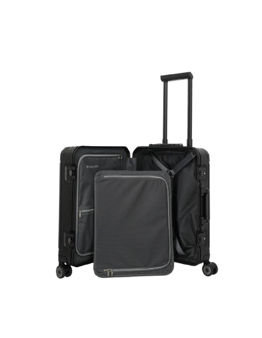 Reis met stijl met de indrukwekkende aluminium koffer van Travelite, de Travelite Next Aluminium koffer Zwart van 55 cm. Deze compacte en robuuste koffer is voorzien van twee ruime hoofdcompartimenten met diverse ritsvakken, waardoor je jouw spullen georganiseerd kunt opbergen. De Travelite Next is een vaste sluiting, ook wel bekend als een framekoffer, wat bijdraagt aan de duurzaamheid en stevigheid van de koffer.