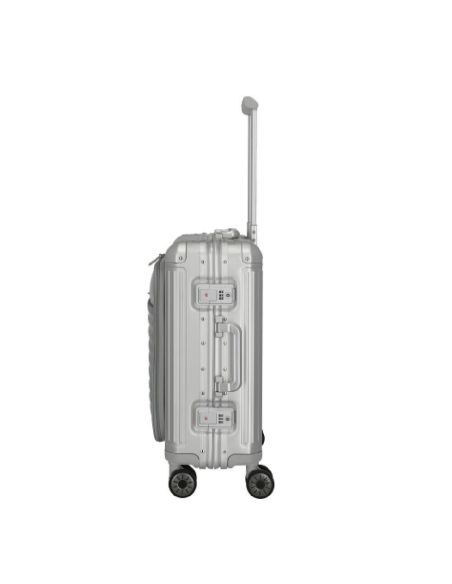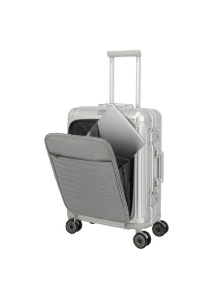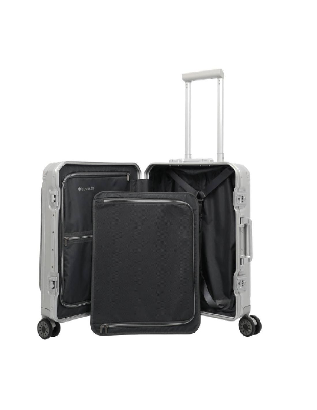Met 55 cm is de Travelite Next Aluminium koffer compact en robuust, met twee ruime hoofdcompartimenten voorzien van verschillende ritsvakken. Het is een zogenaamde 'frame koffer' met vier soepele dubbele wielen, een uitschuifbare trekstang en een TSA-slot, wat het een uitstekende keuze maakt voor reizen. Bovendien beschikt de Travelite Next handbagage koffer over een handig voorvak voor een 15,6 inch laptop, 10,4 inch tablet en documenten.