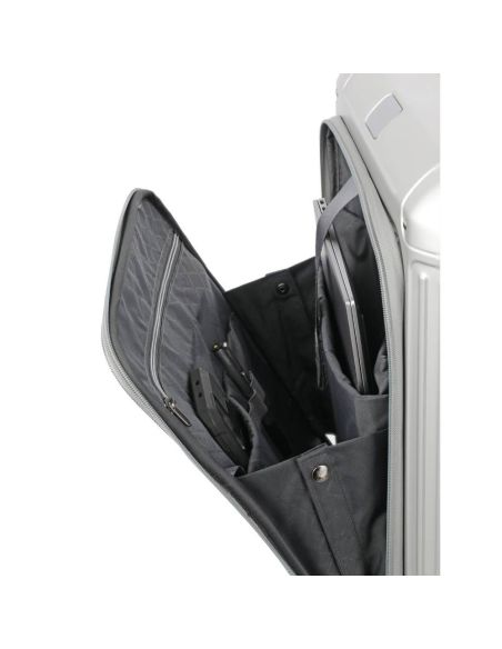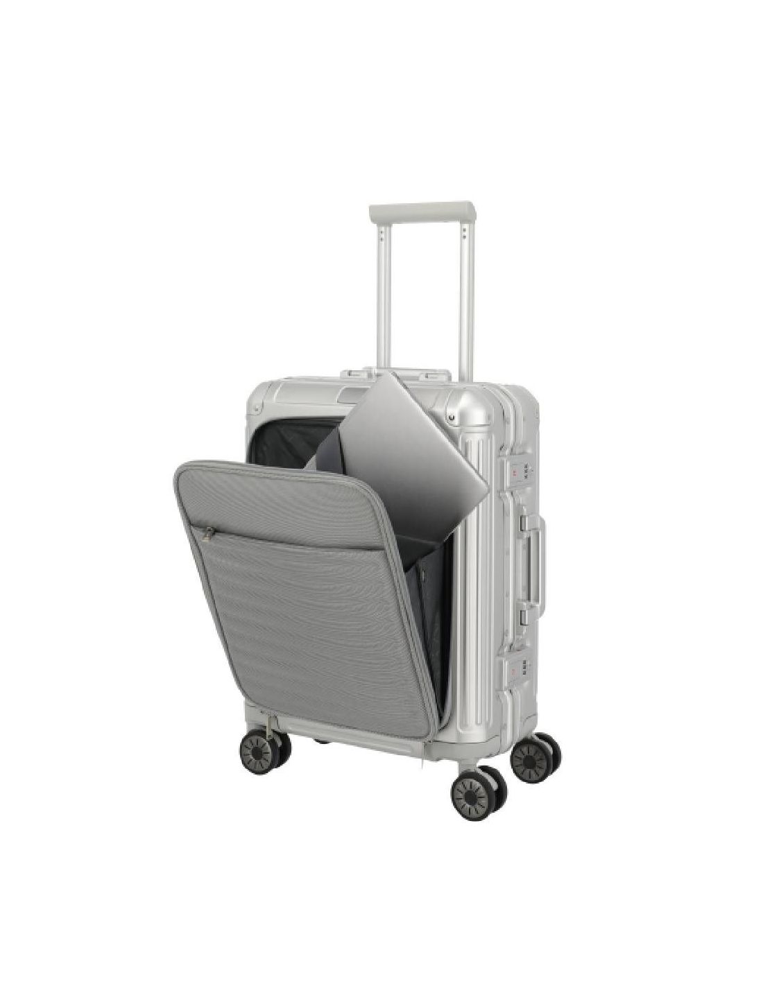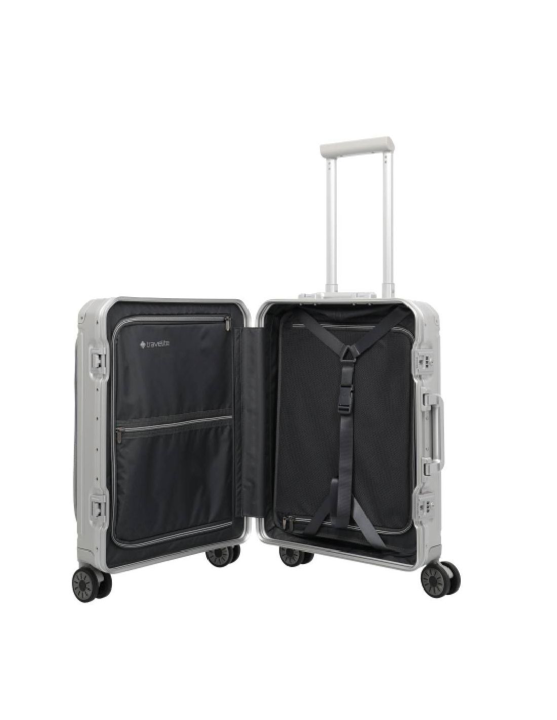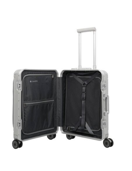 De Travelite Next aluminium handbagage koffer zilver met voorvak is ideaal voor jouw volgende reis. Het biedt het gemak van snelheid bij aankomst op je bestemming, aangezien je niet hoeft te wachten bij de bagageband. Dankzij de vier wielen is de koffer zeer wendbaar en stabiel, en het rechtop kunnen laten staan maakt het dragen minder zwaar dan koffers met slechts twee wielen.