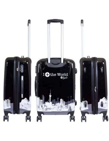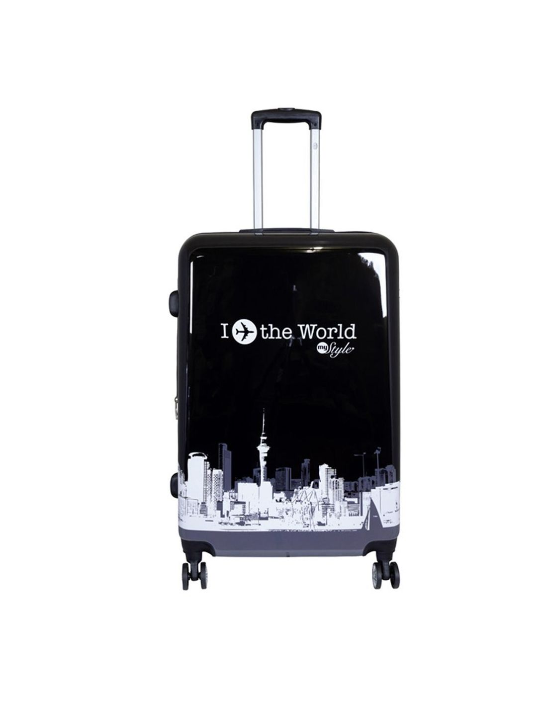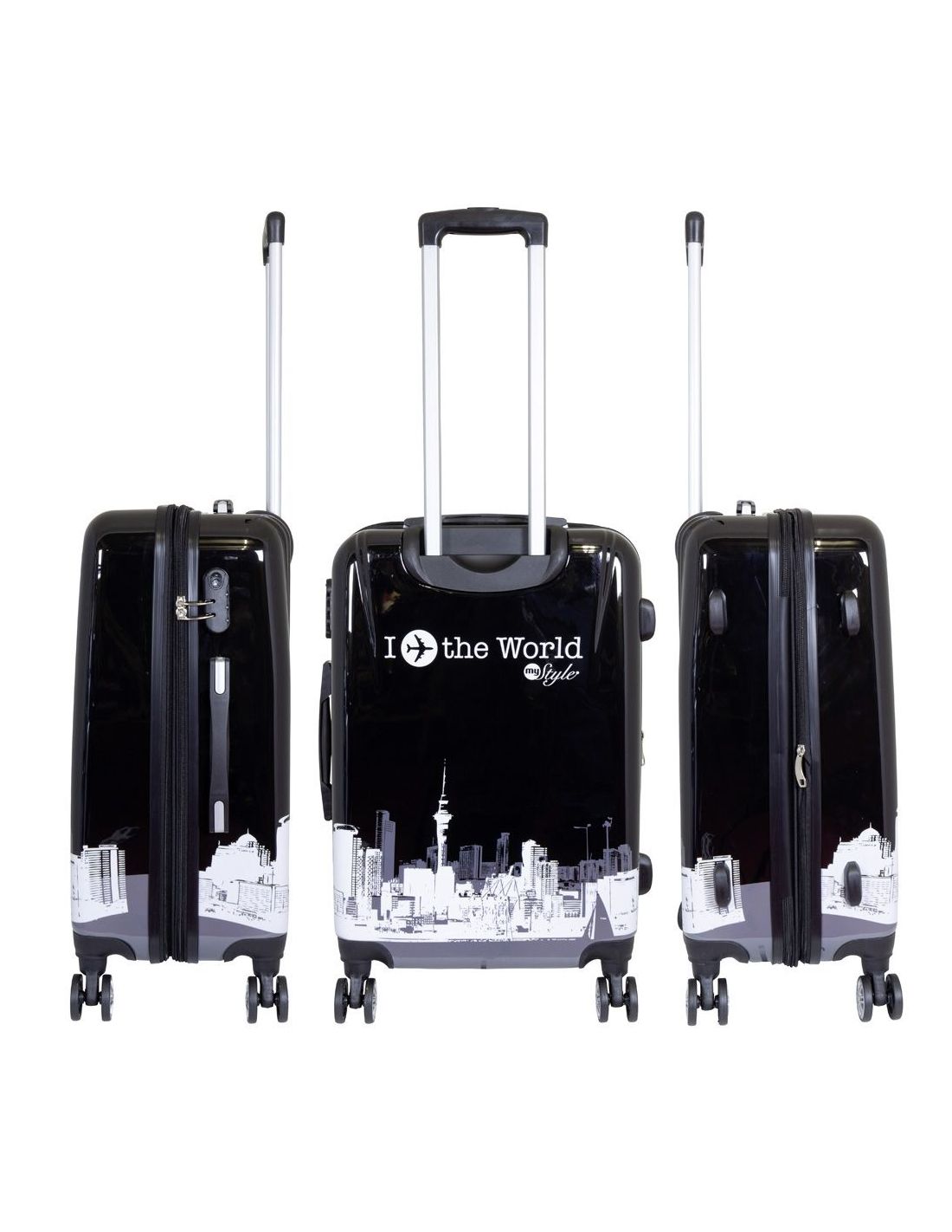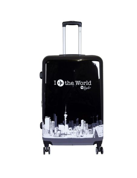 De Monopol Fly The World koffer van 77 cm is een opmerkelijk duurzame en lichte serie koffers. Vervaardigd uit hoogwaardig polycarbonaat, blinkt deze koffer uit in zijn opmerkelijke lichtheid, waardoor reizen aanzienlijk comfortabeler wordt. De Monopol Fly The World koffer beschikt over twee royale hoofdcompartimenten die zijn uitgerust met handige inpakriemen, veilig afgesloten met stevige ritsen. Bovendien is deze koffer voorzien van vier soepel rollende dubbele wielen, een uitschuifbare telescopische trekstang en een cijferslot, waardoor je met gemoedsrust kunt reizen, wetende dat je bagage veilig is beveiligd. De koffer heeft een aparte rits waarmee de inhoud van de koffer vergroot kan worden
