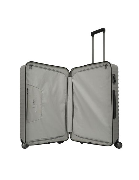 De Titan Litron koffer van 75 cm Champagne is een solide koffer met een robuust polycarbonaat frame. Deze eigentijdse koffer uit de Titan Litron serie biedt alle moderne gemakken die je nodig hebt tijdens het reizen. Voorzien van een telescopische trekstang, vier soepele wielen, een TSA-cijferslot, inpakriemen en een afsluitbaar ritsvak, zorgt de Titan Litron ervoor dat jouw bagage stevig op zijn plaats blijft en goed georganiseerd is.