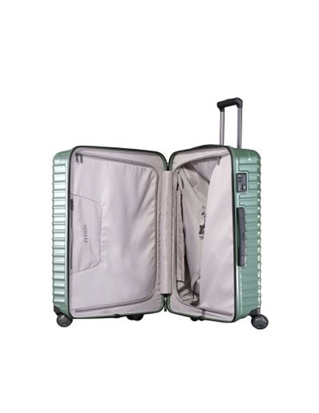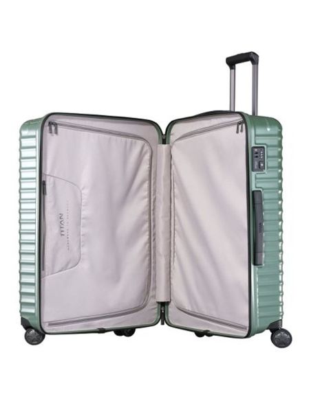 De Titan Litron koffer van 75 cm Groen is een solide koffer met een robuust polycarbonaat frame. Deze eigentijdse koffer uit de Titan Litron serie biedt alle moderne gemakken die je nodig hebt tijdens het reizen. Voorzien van een telescopische trekstang, vier soepele wielen, een TSA-cijferslot, inpakriemen en een afsluitbaar ritsvak, zorgt de Titan Litron ervoor dat jouw bagage stevig op zijn plaats blijft en goed georganiseerd is.