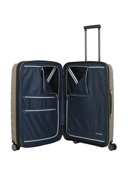 De Travelite Air Base kofferserie met een hoogte van 67 cm wordt gekenmerkt door zijn buitengewone robuustheid en lichtgewicht constructie. Gefabriceerd van sterk polypropyleen, combineert de Travelite Air Base koffer duurzaamheid met een opmerkelijk licht ontwerp. Het ontwerp omvat twee ruime hoofdcompartimenten met inpakriemen die eenvoudig met een rits kunnen worden afgesloten, waardoor je bagage overzichtelijk blijft tijdens het reizen.