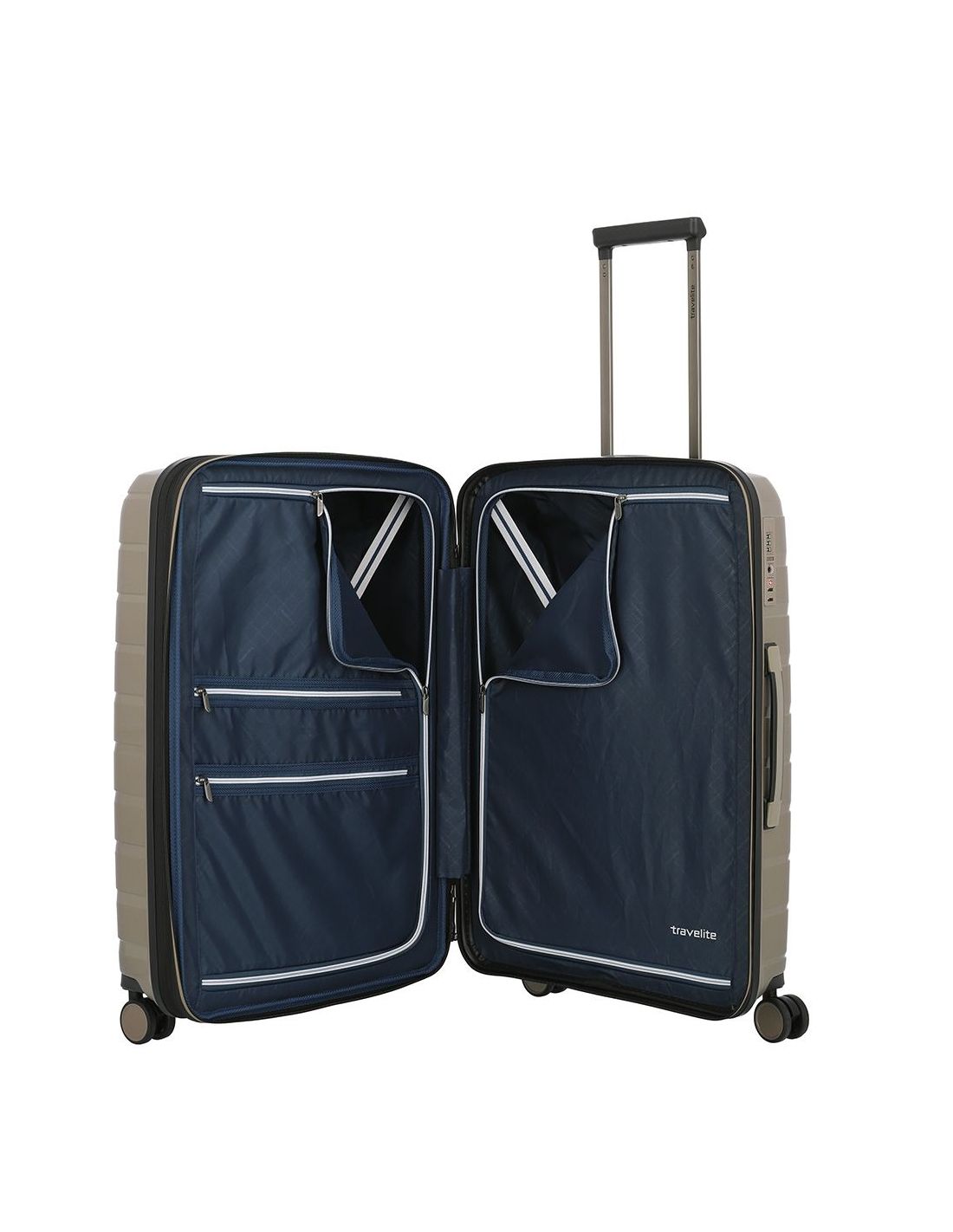Deze handige koffer is voorzien van vier dubbele soepele wielen, een telescopische trekstang en een TSA-cijferslot, waardoor je met vertrouwen en veiligheid kunt reizen. Wat de Travelite Air Base 67cm koffer extra bijzonder maakt, is de mogelijkheid om de inhoud uit te breiden met een extra rits, waardoor de capaciteit kan toenemen van 71 liter naar 82 liter.
