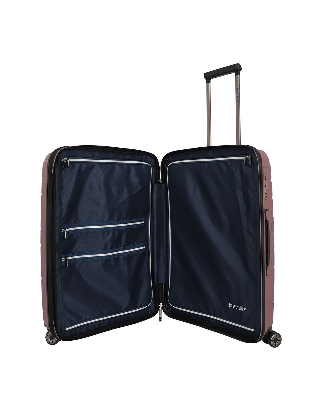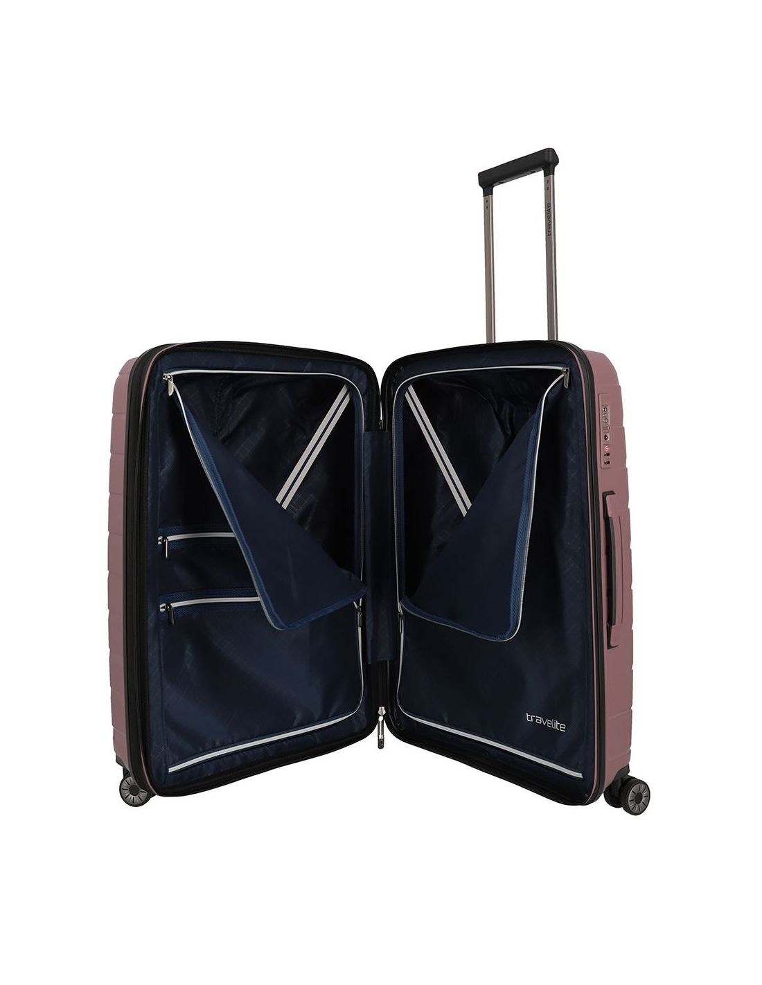 Deze handige koffer is voorzien van vier dubbele soepele wielen, een telescopische trekstang en een TSA-cijferslot, waardoor je met vertrouwen en veiligheid kunt reizen. Wat de Travelite Air Base 67cm koffer extra bijzonder maakt, is de mogelijkheid om de inhoud uit te breiden met een extra rits, waardoor de capaciteit kan toenemen van 71 liter naar 82 liter.