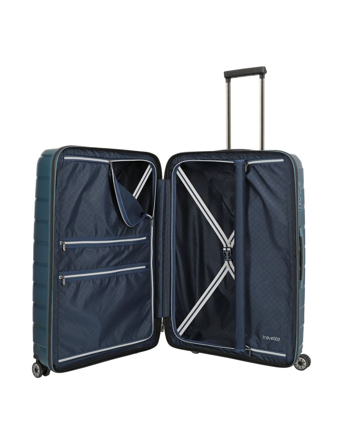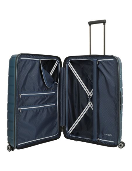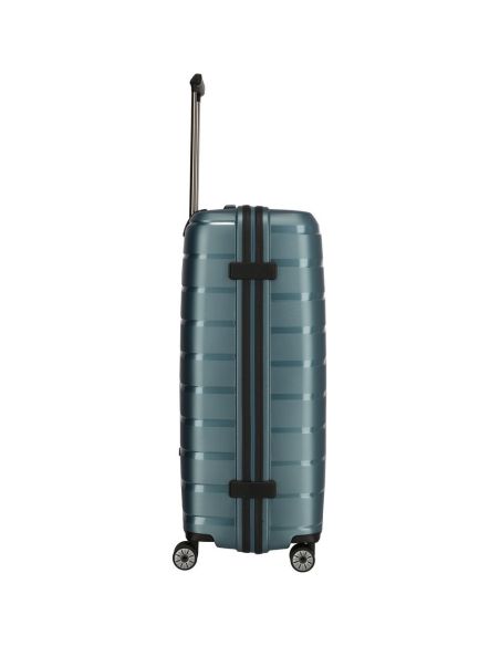 De Travelite Air Base Koffer Ice Blue met een hoogte van 77 cm wordt geprezen als een uiterst stevige en lichtgewicht reeks bagage. Gemaakt van duurzaam polypropyleen, draagt de Travelite Air Base koffer niet alleen bij aan stevigheid maar ook aan een opmerkelijk licht ontwerp. Het ontwerp omvat twee royale hoofdcompartimenten met inpakriemen die moeiteloos met een rits kunnen worden afgesloten, waardoor je bagage ordelijk blijft tijdens het reizen.