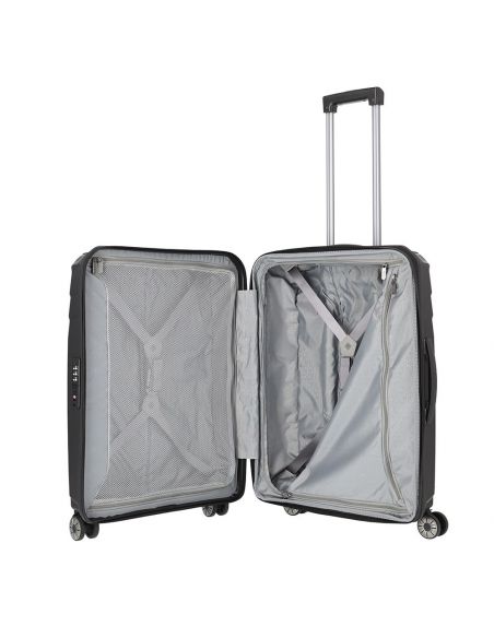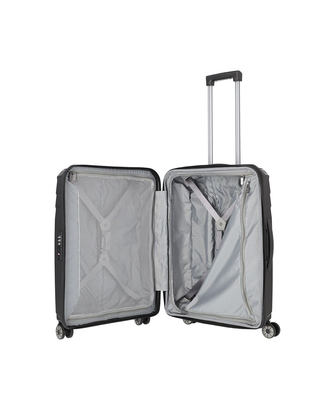 De Travelite Elvaa koffer Zwart van 66 cm illustreert een buitengewoon robuuste en lichtgewicht collectie bagage. Vervaardigd uit duurzaam polypropyleen draagt de Travelite Elvaa koffer niet alleen bij aan stevigheid, maar ook aan een opmerkelijk lichtgewicht ontwerp. Het ontwerp omvat twee royale hoofdcompartimenten met inpakriemen die moeiteloos met een rits kunnen worden afgesloten, waardoor je bagage overzichtelijk blijft tijdens het reizen.