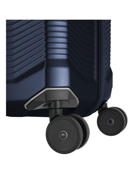 De vergrendelbare lichtmetalen telescopische handgreep is stabiel en eenvoudig op de juiste hoogte in te stellen. Ergonomische draaggrepen aan de boven- en zijkant maken het optillen comfortabel. Dankzij de vier dubbele zwenkwielen beweegt de trolley soepel en stabiel in alle richtingen, wat zorgt voor prettig rijgedrag op luchthavens, stations en andere drukke locaties. Het geïntegreerde TSA slot biedt extra zekerheid bij internationale reizen.