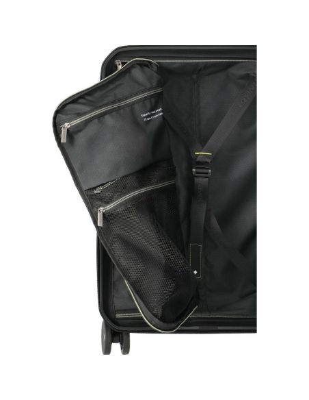 Het slimme interieur biedt een inhoud van 69 liter, die uit te breiden is tot 76 liter dankzij de rekbare plooi. Hierdoor ontstaat extra ruimte wanneer dat nodig is, zonder dat het gemak verloren gaat. Twee praktische verdelers houden kleding en accessoires netjes gescheiden, terwijl de binnenzak die vanaf beide zijden toegankelijk is zorgt voor overzichtelijk inpakken. Een apart wasvak maakt het eenvoudig om gedragen kleding gescheiden te houden van schone items. De binnenvoering van gerecycled polyester is netjes afgewerkt en draagt bij aan een verzorgde binnenkant.