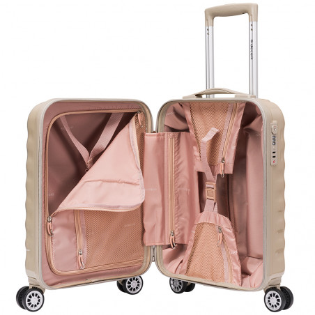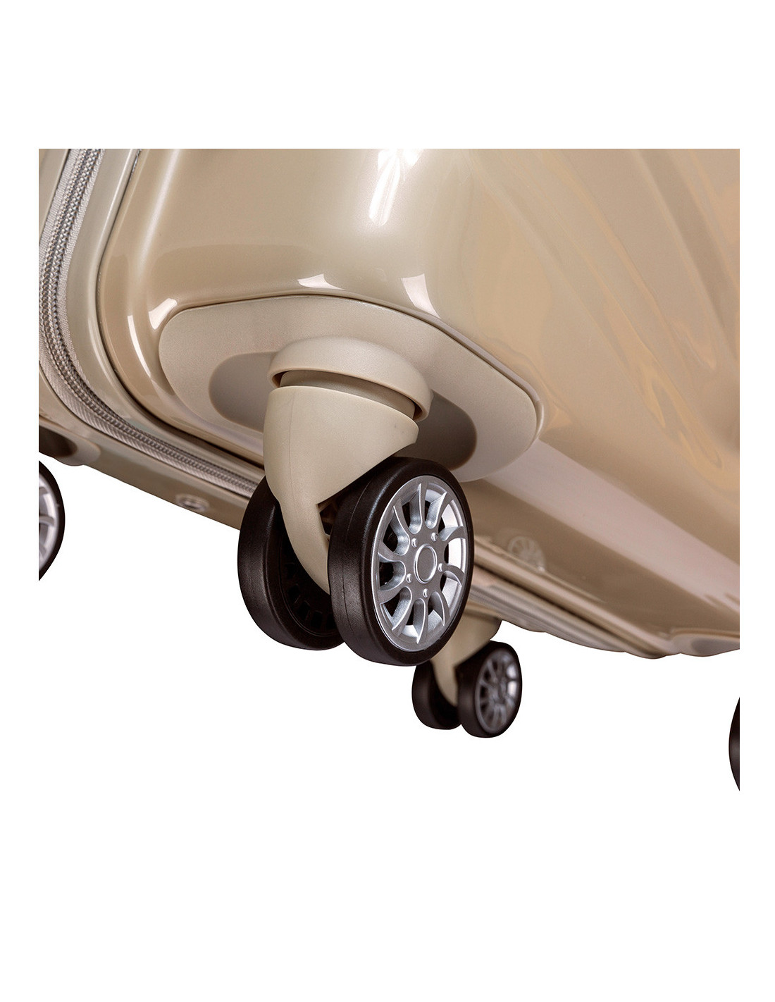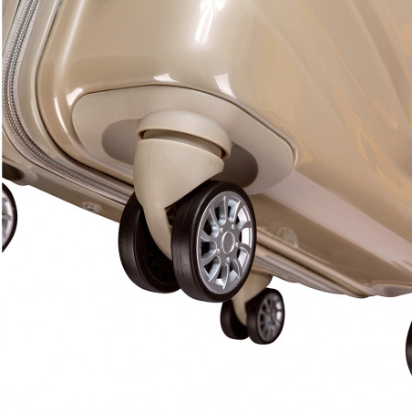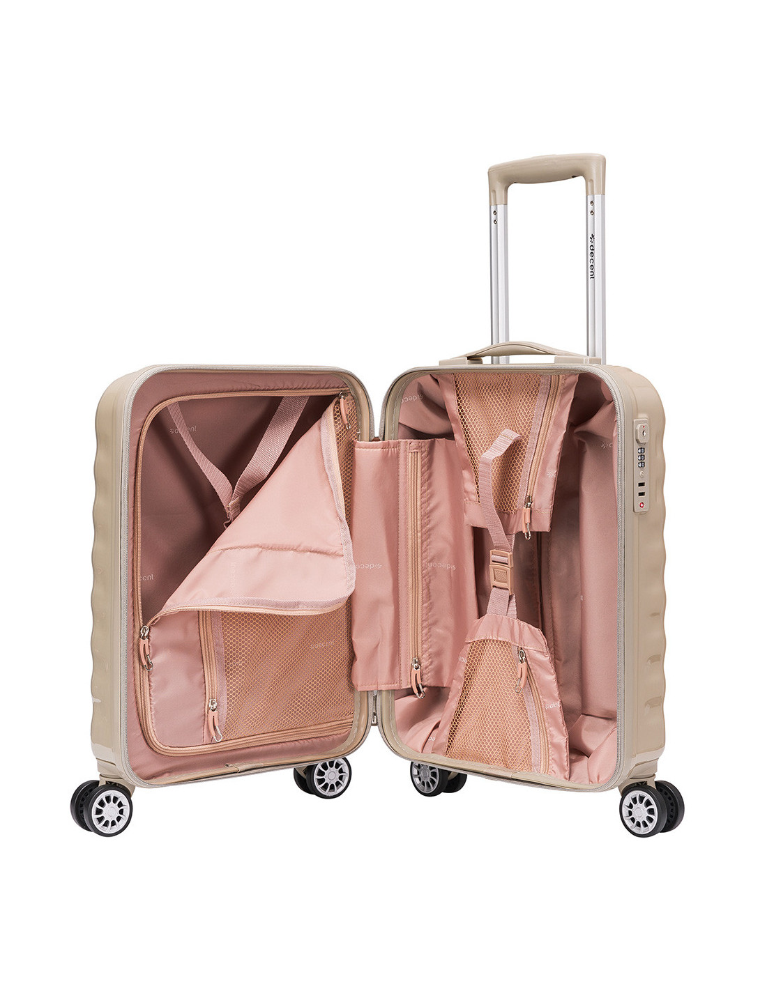 De Decent Exclusivo One kofferset Champagne biedt stevige en lichte polycarbonaat koffers met ritsluiting, ontworpen voor duurzaamheid en gebruiksgemak. Deze serie is uitgerust met alle benodigde functies voor een zorgeloze reiservaring. Binnenin vind je handige inpakriemen en een dichte ritssluiting, waardoor je bagage veilig op zijn plaats blijft tijdens het vervoer.