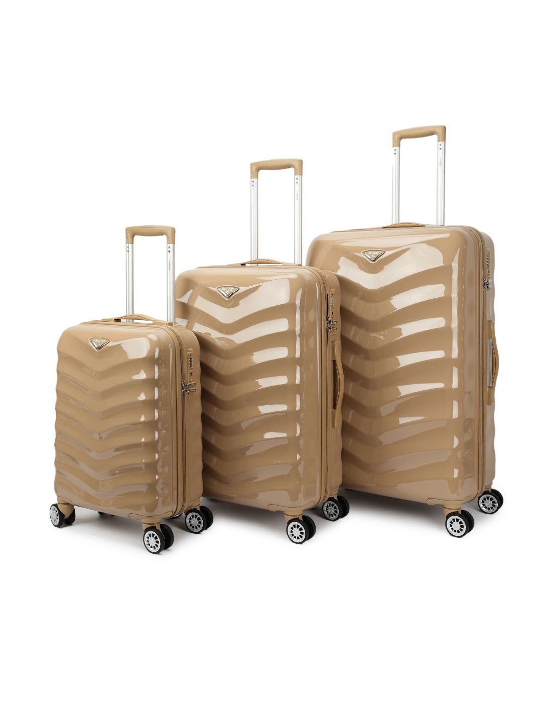 Deze kofferset komt in verschillende maten om aan diverse behoeften te voldoen: 77 x 48 x 28 cm (97 liter, 4,3 kg), 67 x 43 x 26 cm (70 liter, 3,8 kg), en 55 x 45 x 20 cm (35 liter, 2,5 kg). Gemaakt van hoogwaardig polycarbonaat en met een garantie van 2 jaar, biedt deze serie niet alleen bescherming voor je bagage, maar ook gemoedsrust voor jou als reiziger.