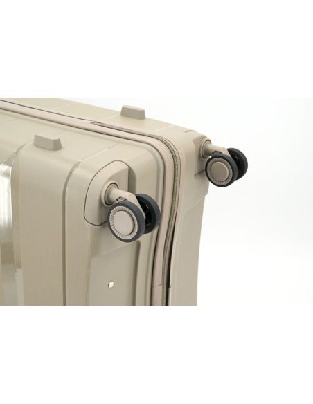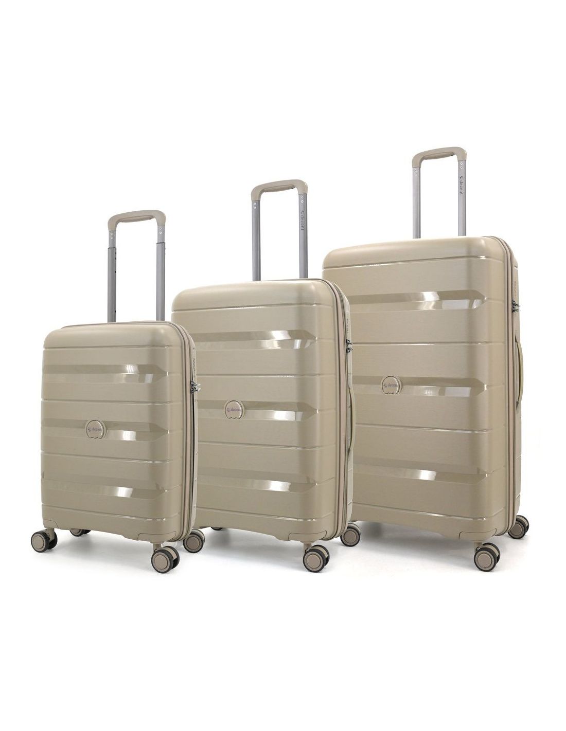 De Decent Straight Line kofferset biedt een complete oplossing voor elke reis, van een korte citytrip tot een lange vakantie. Deze set bestaat uit drie verschillende formaten koffers die perfect op elkaar zijn afgestemd in design, materiaal en functionaliteit. Elke koffer is vervaardigd van stevig polypropyleen en voorzien van het kenmerkende horizontale lijnenspel, wat zorgt voor een moderne en robuuste uitstraling.