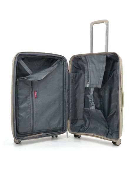 Het interieur van iedere koffer is overzichtelijk ingedeeld met meerdere ritsvakken, elastische pakriemen en een afsluitbaar tussenschot. Zo blijven kledingstukken en andere benodigdheden netjes op hun plek. De middelste en grootste koffer zijn bovendien voorzien van een uitbreidbare rits voor extra volume.
