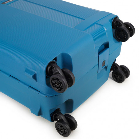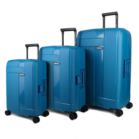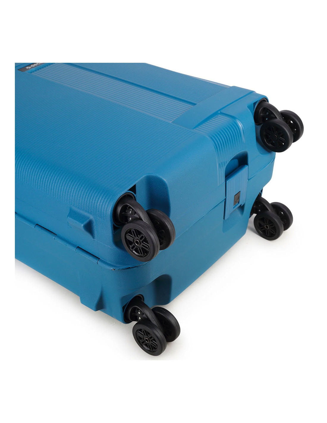 De afmetingen variëren van 82 x 54 x 32,5 cm tot 55 x 37 x 23 cm, met gewichten van 4,9 kg tot 2,9 kg. De inhoud varieert van 135 liter tot 43 liter. Gemaakt van polypropyleen, biedt de kofferset een garantie van 2 jaar.