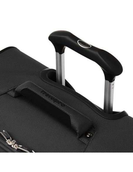 Gepatenteerde Contour Grip is ontworpen met rubberen contactpunten voor een comfortabele greep en eenvoudigere manoeuvreerbaarheid. Lichtgewicht maar stevige PowerScope Lite handgreep vergrendelt in twee posities (38" en 42,5") om gebruikers van verschillende lengtes te accommoderen. Polyester stof met DuraGuard© coating is water- en vlekbestendig, zodat de bagage er geweldig uit blijft zien. 4-wiel spinners draaien 360°, wat zorgt voor moeiteloze wendbaarheid en een soepele rol in elke richting. Uniek bodemtray-ontwerp verhoogt de duurzaamheid en stabiliseert de wielen voor probleemloze uitlijning en manoeuvreerbaarheid. Uitbreidbaar tot 2" om de inpakcapaciteit te maximaliseren met een taps toelopende vorm om kantelen te voorkomen. Ergonomische ritssluitingen met hoge treksterkte zijn sterk maar toch vriendelijk voor de handen. Voorzien van laagprofiel draaggrepen aan de boven-, zij- en onderkant. Volledige binnenzak over de gehele lengte van het deksel, zijaccessoirezak en verstelbare spanbanden bieden inpakgemak en flexibiliteit. DuraGuard © beschermt de voering tegen vocht. Ondersteund door Travelpro® 5 jaar beperkte garantie. TSA goedgekeurd 3-cijferig combinatieslot (niet getoond op hoofdafbeelding).