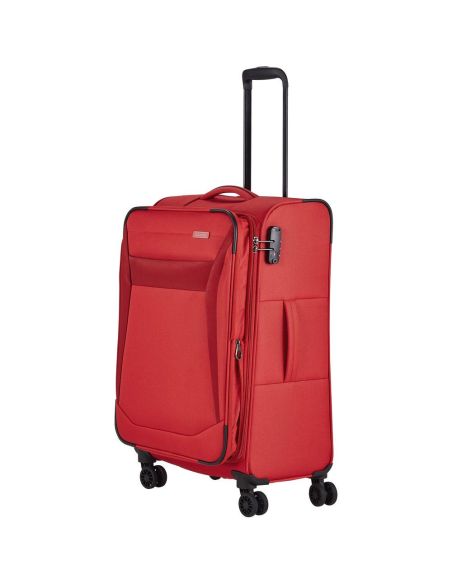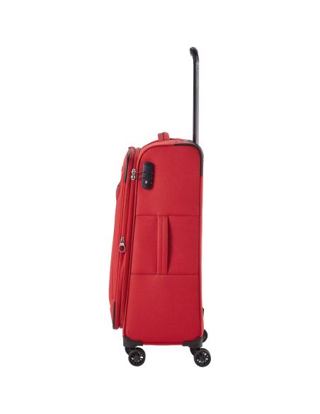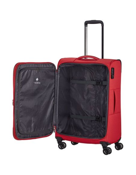 De Travelite Chios 4 Wiel koffer 67cm Expandable Rood is een veelzijdige reisgezel die zich perfect leent voor zowel vakantiegangers als zakenreizigers. Uitgerust met vier soepele roterende wielen en een telescopische trekstang, biedt de koffer moeiteloos transport, terwijl de handvaten aan de boven- en zijkant extra comfort en gebruiksgemak bieden.
