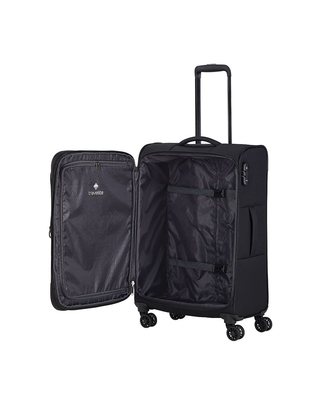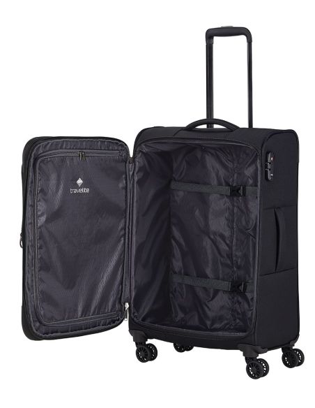 De Travelite Chios 4 Wiel koffer 67cm Expandable Zwart is een veelzijdige reisgezel die zich perfect leent voor zowel vakantiegangers als zakenreizigers. Uitgerust met vier soepele roterende wielen en een telescopische trekstang, biedt de koffer moeiteloos transport, terwijl de handvaten aan de boven- en zijkant extra comfort en gebruiksgemak bieden.