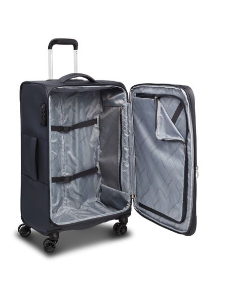 De Worldpack Dublin 4 wiel Trolley 65cm biedt veelzijdigheid voor zowel vakantie- als zakenreizen. Met zijn vier soepel roterende wielen, telescopische trekstang en handvatten aan de boven- en zijkant garandeert hij extra comfort bij gebruik. De koffer beschikt over twee compartimenten met pakriemen en verschillende ritsvakken aan zowel de binnen- als buitenkant, waardoor je je bagage georganiseerd kunt houden. Daarnaast zorgt het TSA-cijferslot voor extra beveiliging.