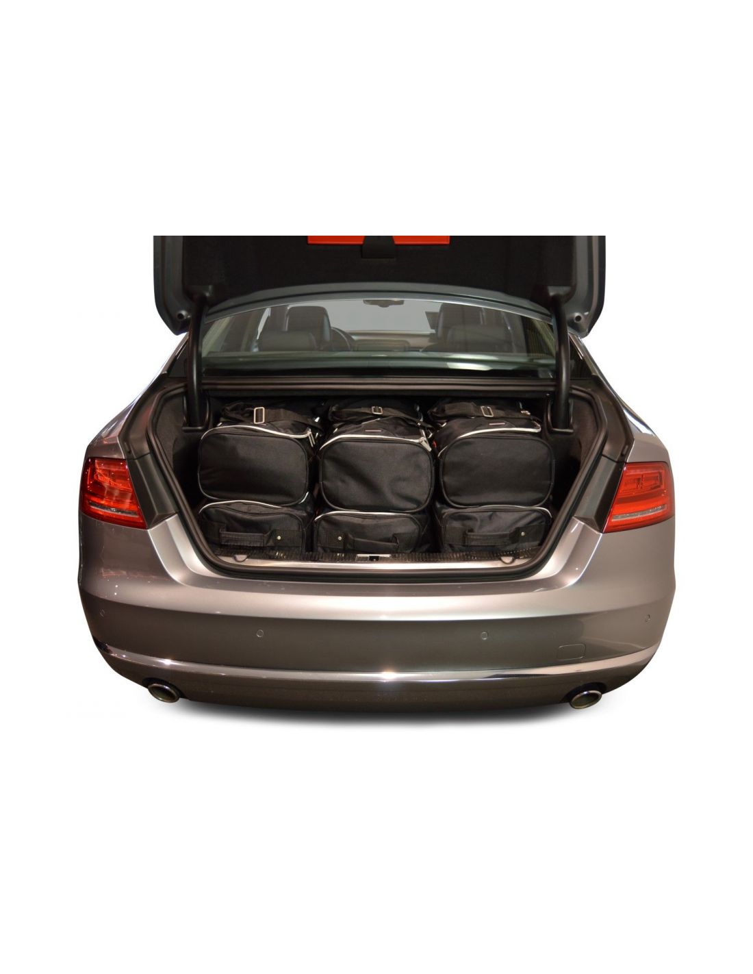 Inpakken ging nog nooit zo handig en snel, want je weet: past het in de Car-Bags.com reistassen set, dan past het vanzelf in je kofferbak. De meeste sets bestaan uit een onderlaag van handige trolleytassen met wieltjes en telescoopgreep en een bovenlaag van bijpassende reistassen. Een Car-Bags reistassenset is exact op maat gemaakt per automodel. De set wordt dus niet samengesteld uit een vast assortiment standaard tassen, maar de maten van de trolleytassen en reistassen zijn precies aangepast aan de kofferruimte. Daardoor wordt deze optimaal benut in breedte, lengte en hoogte. Car-Bags.com reistassen zijn meestal 30-35 cm breed, zodat opgevouwen kleding er goed in past. Onze tassen zijn niet te groot, want grote tassen zijn zwaar en moeilijk te hanteren. Bovendien raakt de inhoud bij grote tassen makkelijker door elkaar.