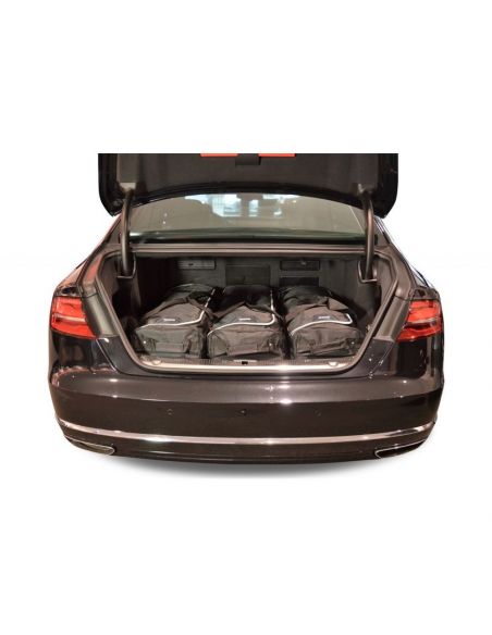 Inpakken ging nog nooit zo handig en snel, want je weet: past het in de Car-Bags.com reistassen set, dan past het vanzelf in je kofferbak. De meeste sets bestaan uit een onderlaag van handige trolleytassen met wieltjes en telescoopgreep en een bovenlaag van bijpassende reistassen. Een Car-Bags reistassenset is exact op maat gemaakt per automodel. De set wordt dus niet samengesteld uit een vast assortiment standaard tassen, maar de maten van de trolleytassen en reistassen zijn precies aangepast aan de kofferruimte. Daardoor wordt deze optimaal benut in breedte, lengte en hoogte. Car-Bags.com reistassen zijn meestal 30-35 cm breed, zodat opgevouwen kleding er goed in past. Onze tassen zijn niet te groot, want grote tassen zijn zwaar en moeilijk te hanteren. Bovendien raakt de inhoud bij grote tassen makkelijker door elkaar.