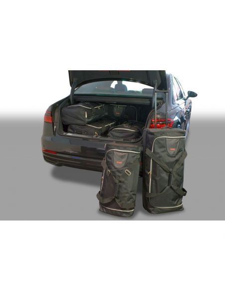 Inpakken ging nog nooit zo handig en snel, want je weet: past het in de Car-Bags.com reistassen set, dan past het vanzelf in je kofferbak. De meeste sets bestaan uit een onderlaag van handige trolleytassen met wieltjes en telescoopgreep en een bovenlaag van bijpassende reistassen. Een Car-Bags reistassenset is exact op maat gemaakt per automodel. De set wordt dus niet samengesteld uit een vast assortiment standaard tassen, maar de maten van de trolleytassen en reistassen zijn precies aangepast aan de kofferruimte. Daardoor wordt deze optimaal benut in breedte, lengte en hoogte. Car-Bags.com reistassen zijn meestal 30-35 cm breed, zodat opgevouwen kleding er goed in past. Onze tassen zijn niet te groot, want grote tassen zijn zwaar en moeilijk te hanteren. Bovendien raakt de inhoud bij grote tassen makkelijker door elkaar.