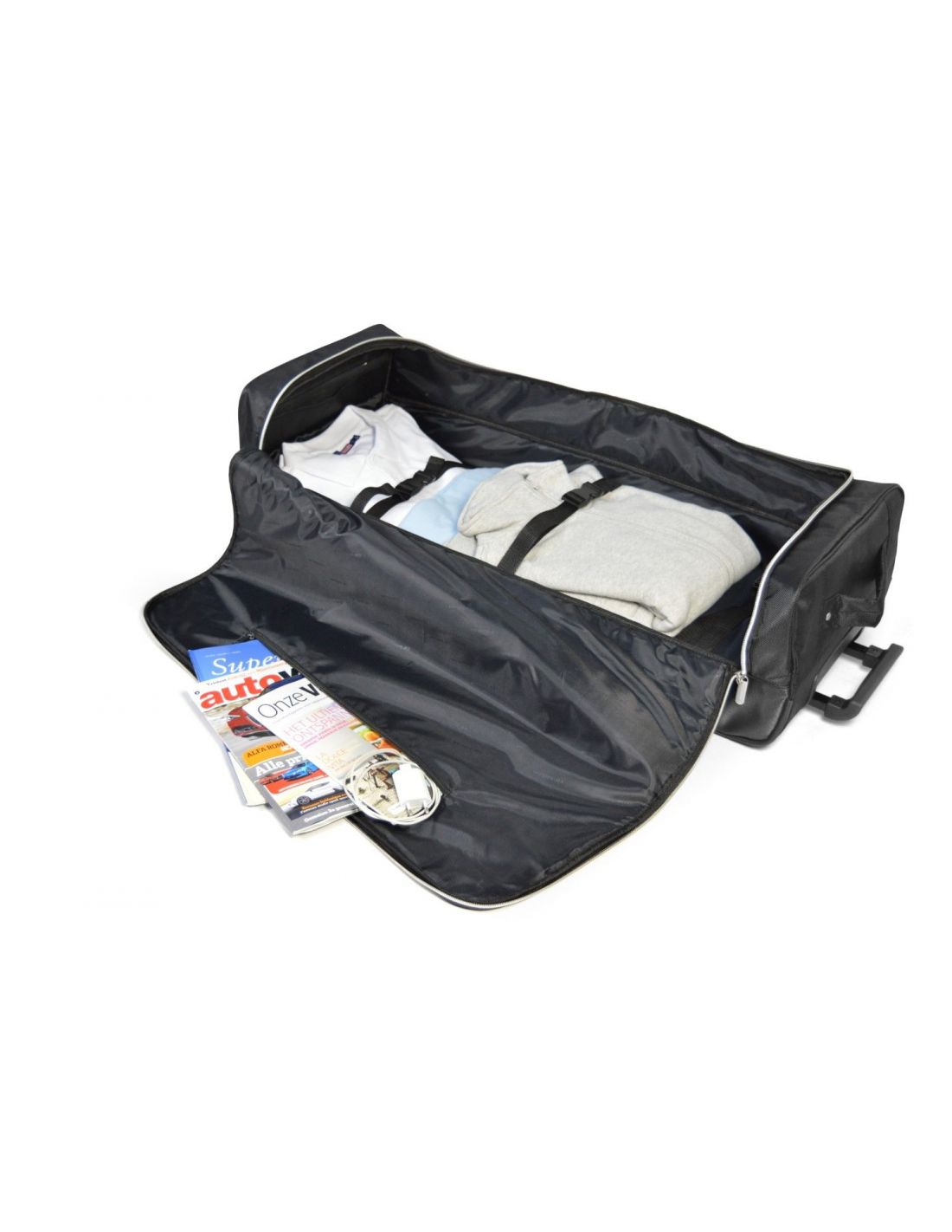 Inpakken ging nog nooit zo handig en snel, want je weet: past het in de Car-Bags.com reistassen set, dan past het vanzelf in je kofferbak. De meeste sets bestaan uit een onderlaag van handige trolleytassen met wieltjes en telescoopgreep en een bovenlaag van bijpassende reistassen. Een Car-Bags reistassenset is exact op maat gemaakt per automodel. De set wordt dus niet samengesteld uit een vast assortiment standaard tassen, maar de maten van de trolleytassen en reistassen zijn precies aangepast aan de kofferruimte. Daardoor wordt deze optimaal benut in breedte, lengte en hoogte. Car-Bags.com reistassen zijn meestal 30-35 cm breed, zodat opgevouwen kleding er goed in past. Onze tassen zijn niet te groot, want grote tassen zijn zwaar en moeilijk te hanteren. Bovendien raakt de inhoud bij grote tassen makkelijker door elkaar.