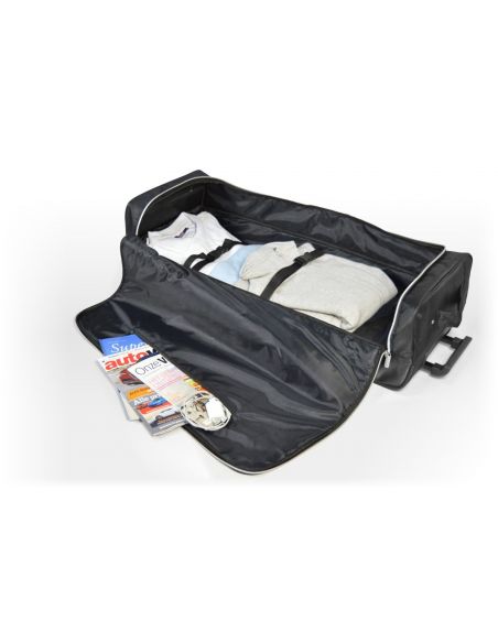 Inpakken ging nog nooit zo handig en snel, want je weet: past het in de Car-Bags.com reistassen set, dan past het vanzelf in je kofferbak. De meeste sets bestaan uit een onderlaag van handige trolleytassen met wieltjes en telescoopgreep en een bovenlaag van bijpassende reistassen. Een Car-Bags reistassenset is exact op maat gemaakt per automodel. De set wordt dus niet samengesteld uit een vast assortiment standaard tassen, maar de maten van de trolleytassen en reistassen zijn precies aangepast aan de kofferruimte. Daardoor wordt deze optimaal benut in breedte, lengte en hoogte. Car-Bags.com reistassen zijn meestal 30-35 cm breed, zodat opgevouwen kleding er goed in past. Onze tassen zijn niet te groot, want grote tassen zijn zwaar en moeilijk te hanteren. Bovendien raakt de inhoud bij grote tassen makkelijker door elkaar.