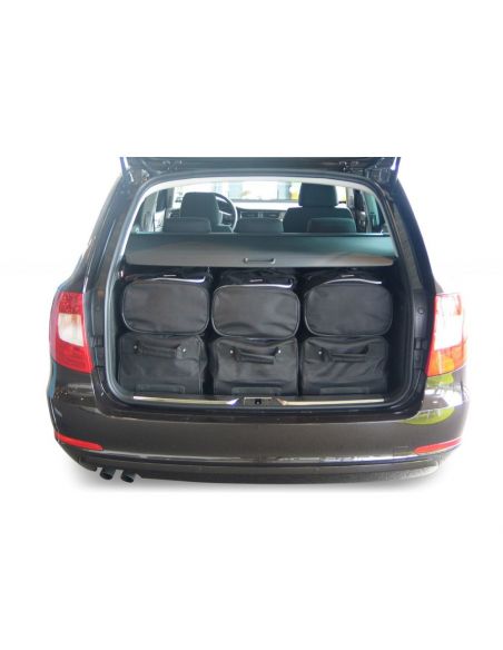 Inpakken ging nog nooit zo handig en snel, want je weet: past het in de Car-Bags.com reistassen set, dan past het vanzelf in je kofferbak. De meeste sets bestaan uit een onderlaag van handige trolleytassen met wieltjes en telescoopgreep en een bovenlaag van bijpassende reistassen. Een Car-Bags reistassenset is exact op maat gemaakt per automodel. De set wordt dus niet samengesteld uit een vast assortiment standaard tassen, maar de maten van de trolleytassen en reistassen zijn precies aangepast aan de kofferruimte. Daardoor wordt deze optimaal benut in breedte, lengte en hoogte. Car-Bags.com reistassen zijn meestal 30-35 cm breed, zodat opgevouwen kleding er goed in past. Onze tassen zijn niet te groot, want grote tassen zijn zwaar en moeilijk te hanteren. Bovendien raakt de inhoud bij grote tassen makkelijker door elkaar.