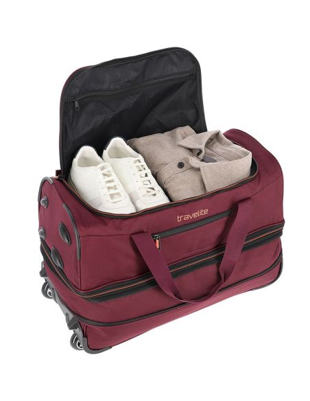 De Travelite Basics reistas bordeaux in maat S met wielen is een intelligente en ruime optie voor reizigers. Met een royale capaciteit van 51 liter en een lichtgewicht ontwerp van slechts 2,3 kg, combineert deze tas ruime opslag met draaggemak. Voor diegenen die extra bagageruimte nodig hebben, kan de tas gemakkelijk worden uitgebreid tot 64 liter dankzij een handige extra rits. Het ruime hoofdcompartiment sluit stevig af met een betrouwbare ritssluiting en biedt overvloedige ruimte voor al je benodigdheden. Daarnaast is de tas uitgerust met een praktisch ritsvak aan de voorzijde, ideaal voor het geordend opbergen van kleinere items en essentiële spullen.
