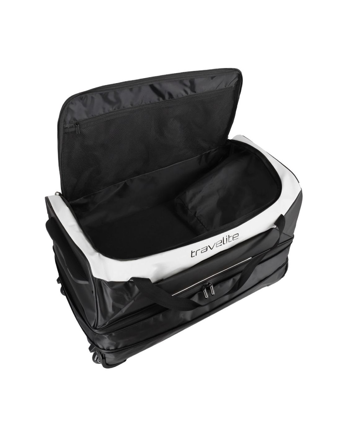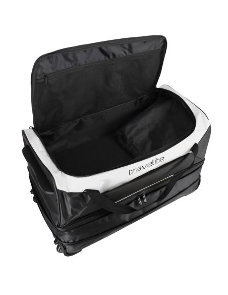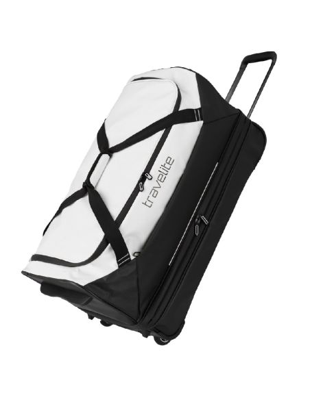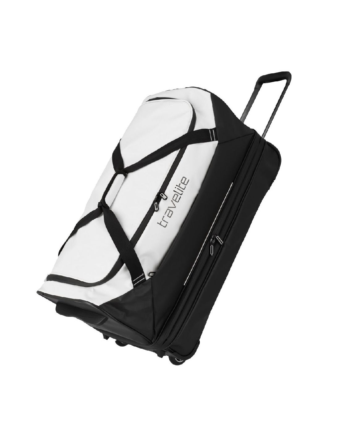 De Travelite Basics reistas met wielen biedt reizigers een prachtige en ruime optie voor onderweg. Gemaakt van tarpauleum, vergelijkbaar met vrachtwagenzeil, biedt deze tas een royale capaciteit van 98 tot 119 liter en weegt slechts 3,7 kg, waardoor hij zowel ruime opslag als draaggemak biedt. Met een handige extra rits kan de tas eenvoudig worden uitgebreid tot 119 liter voor diegenen die extra bagageruimte nodig hebben. Het ruime hoofdcompartiment sluit stevig af met een betrouwbare ritssluiting en biedt voldoende ruimte voor al je benodigdheden. Bovendien beschikt de tas over een praktisch ritsvak aan de voorzijde, perfect voor het georganiseerd opbergen van kleinere items en essentiële spullen.