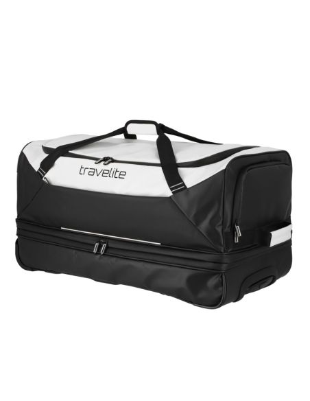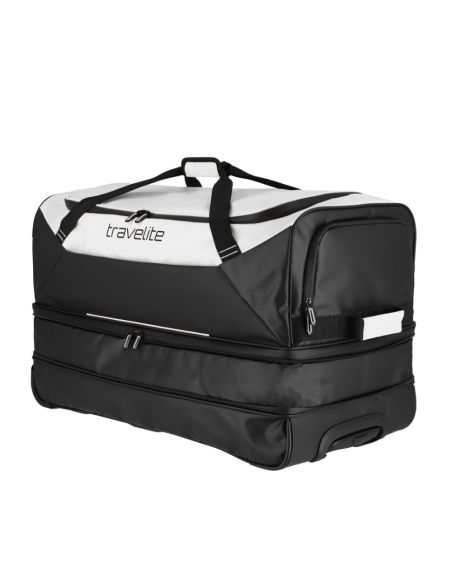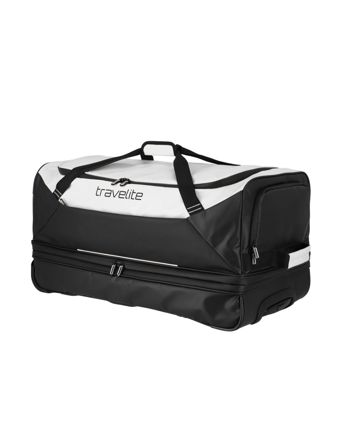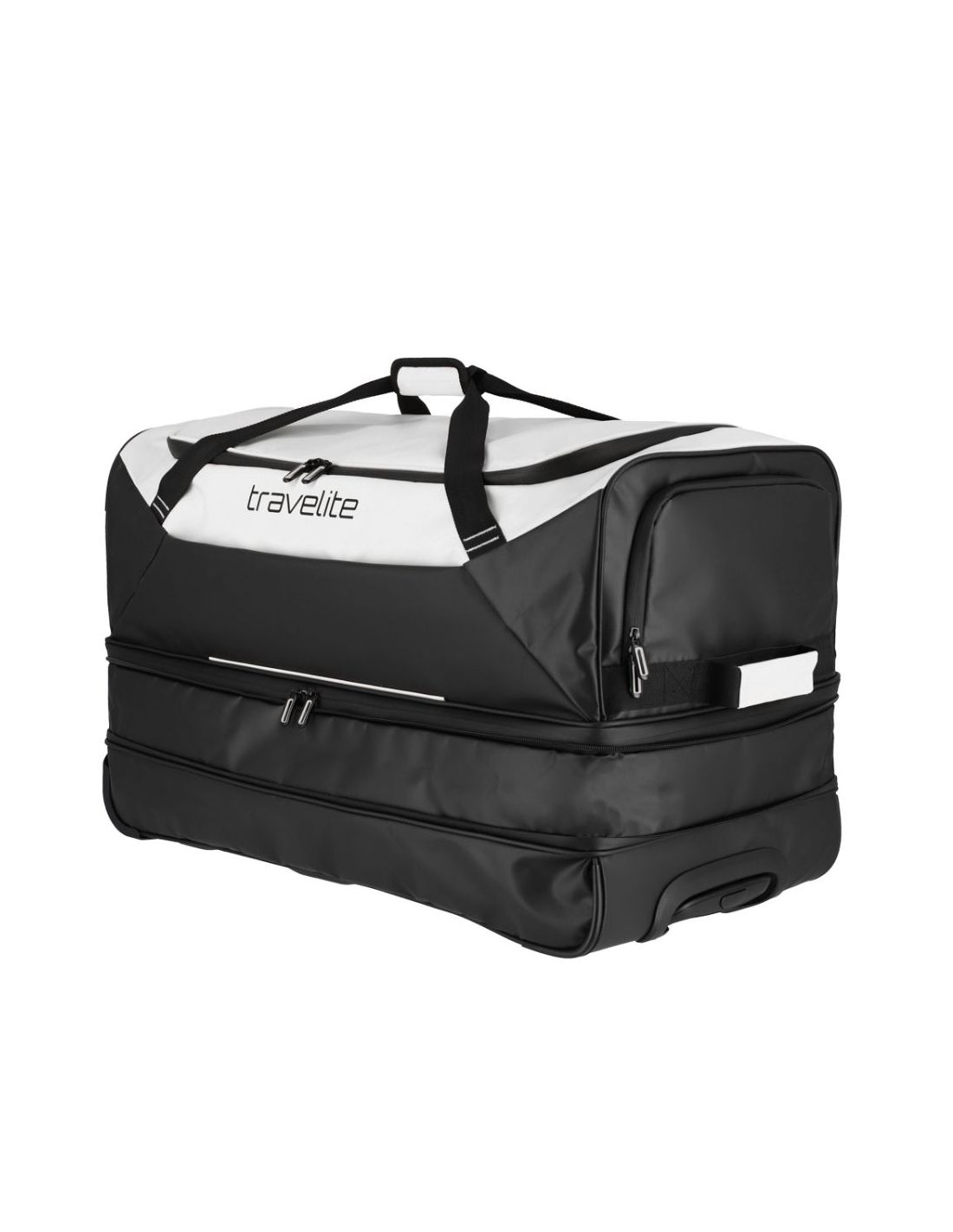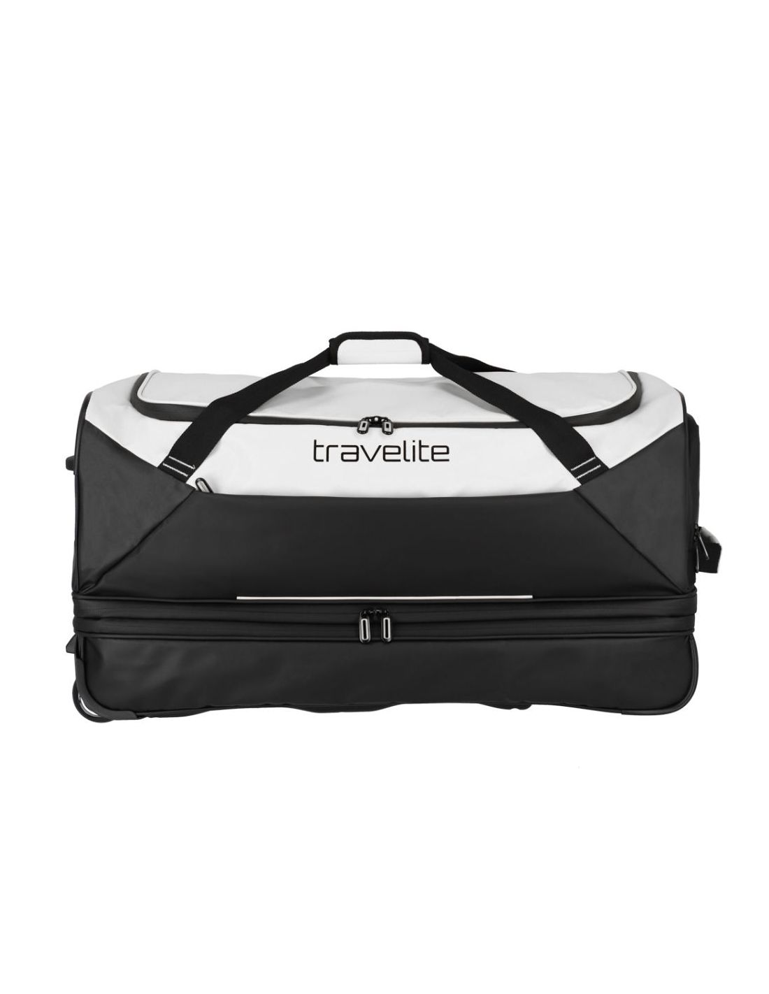 De Travelite Basics reistas met wielen biedt reizigers een prachtige en ruime optie voor onderweg. Gemaakt van tarpauleum, vergelijkbaar met vrachtwagenzeil, biedt deze tas een royale capaciteit van 98 tot 119 liter en weegt slechts 3,7 kg, waardoor hij zowel ruime opslag als draaggemak biedt. Met een handige extra rits kan de tas eenvoudig worden uitgebreid tot 119 liter voor diegenen die extra bagageruimte nodig hebben. Het ruime hoofdcompartiment sluit stevig af met een betrouwbare ritssluiting en biedt voldoende ruimte voor al je benodigdheden. Bovendien beschikt de tas over een praktisch ritsvak aan de voorzijde, perfect voor het georganiseerd opbergen van kleinere items en essentiële spullen.