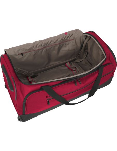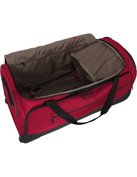 De Travelite Crosslite reistas met wielen rood is een ruime en lichte metgezel voor onderweg, met een inhoud van 97 liter en een gewicht van slechts 3,4kg. Het u-vormige hoofdcompartiment aan de bovenzijde biedt voldoende ruimte voor je spullen, terwijl het extra ruime ritsvak aan de voorzijde handig is voor het opbergen van kleinere items. De reistas is vervaardigd van sterk gerecycled polyester, dat niet alleen duurzaam is maar ook eenvoudig schoon te maken.