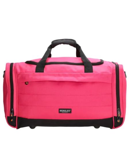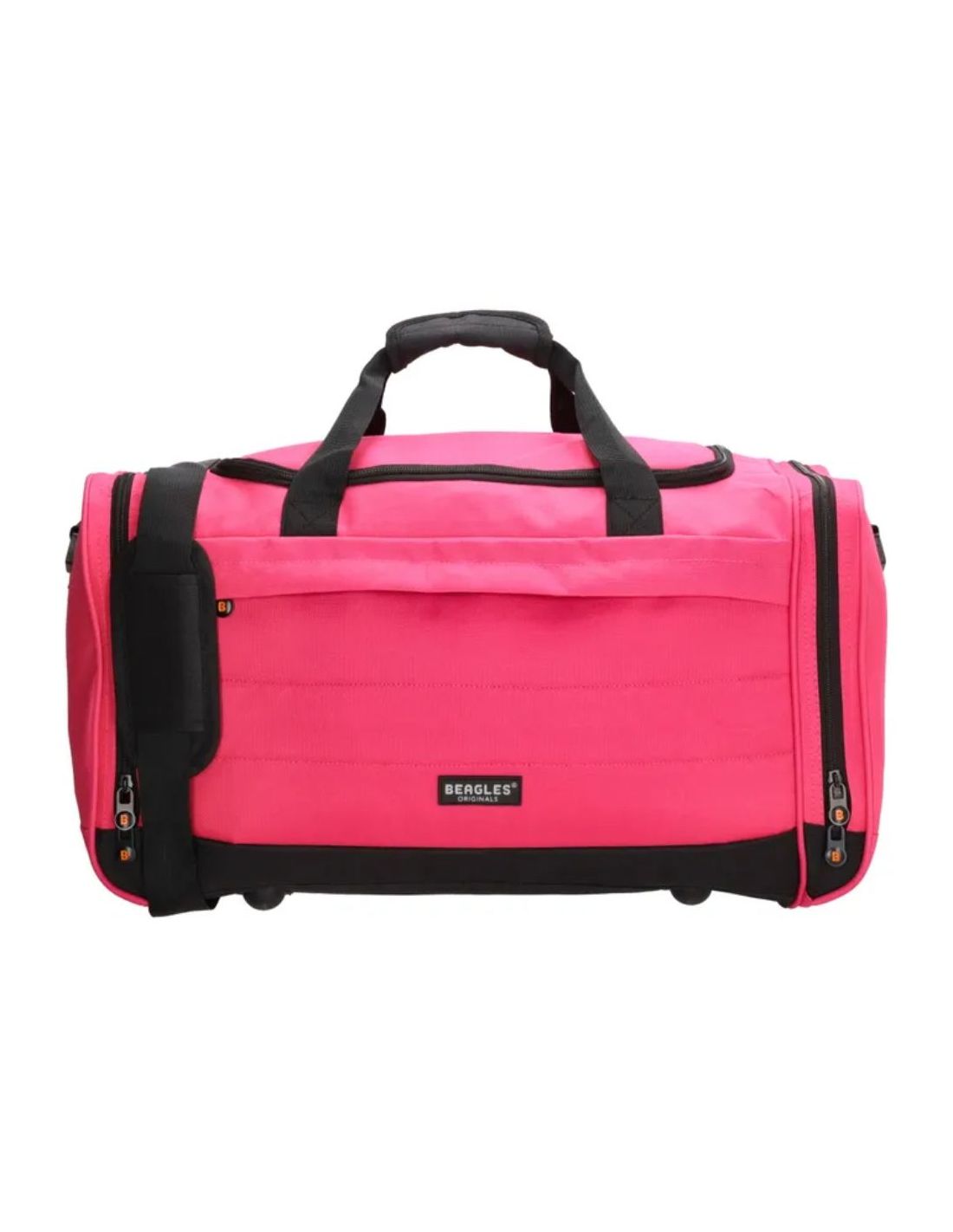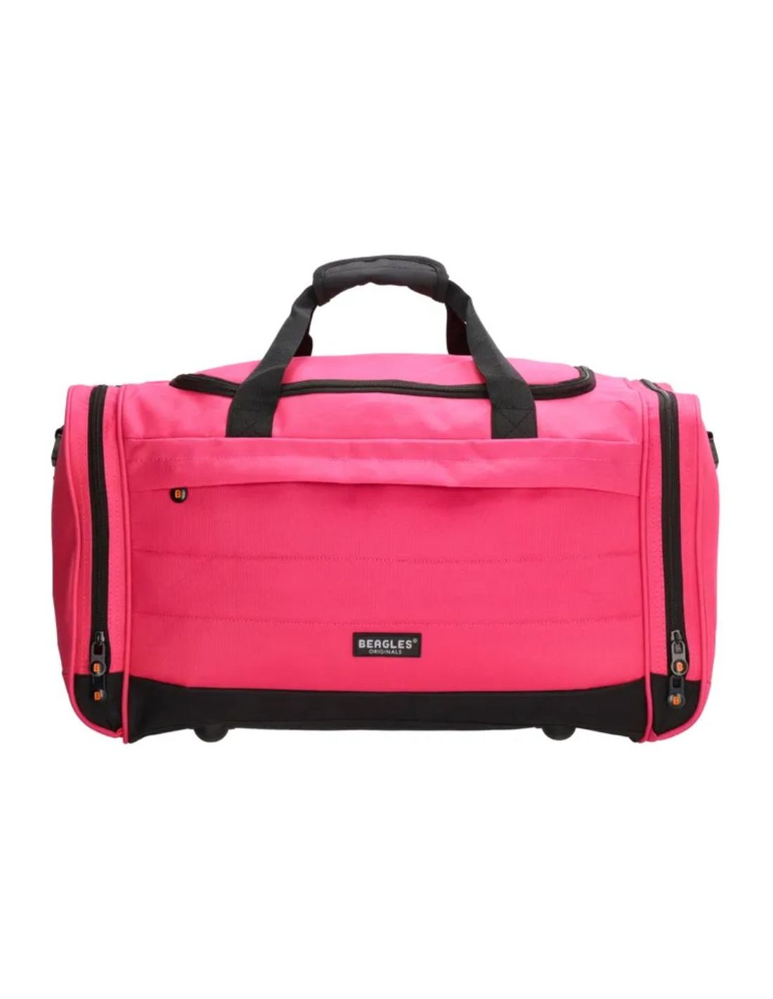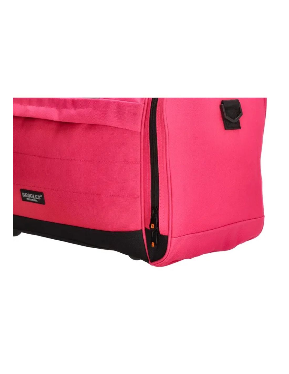 De Beagles Originals handbagage reistas Roze is een praktische en stijlvolle metgezel voor onderweg. Met een voorvak met ritssluiting en een ruim hoofdvak met U-vormige ritssluiting biedt deze tas gemakkelijke toegang tot al je spullen. De twee zijvakken met rits zijn perfect voor het opbergen van kleinere reisbenodigdheden. Dankzij de handige klittenbandlip kunnen de twee handvatten eenvoudig worden samengebonden voor extra draagcomfort. Bovendien is de tas voorzien van een afneembare en verstelbare schouderband, waardoor je hem ook comfortabel over de schouder kunt dragen.