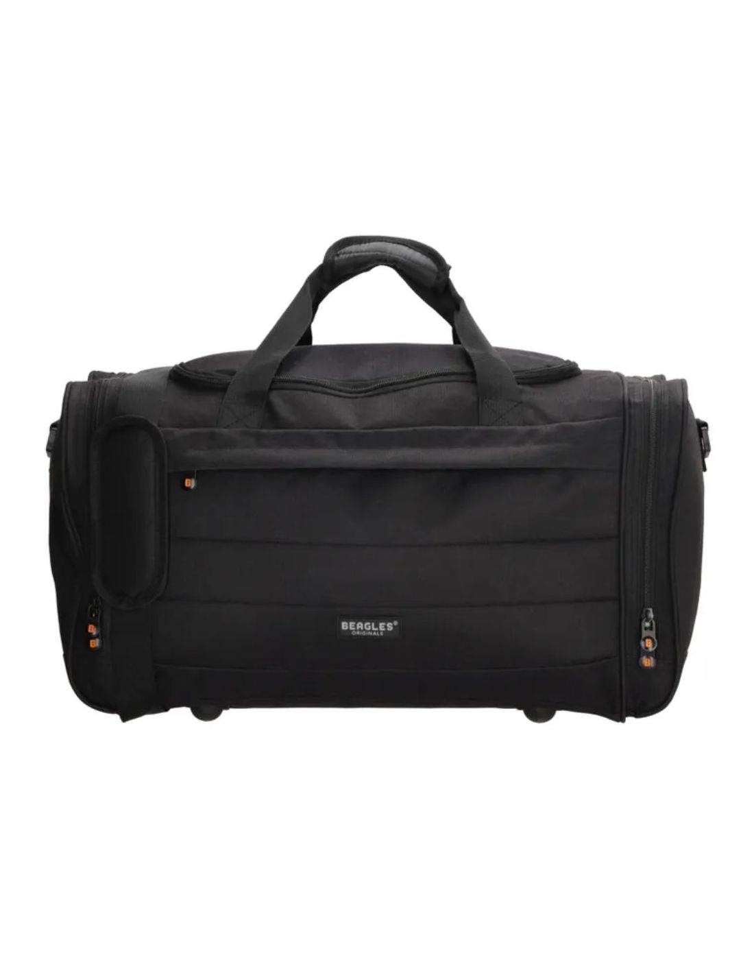 De Beagles Originals handbagage reistas Zwart is een praktische en stijlvolle metgezel voor onderweg. Met een voorvak met ritssluiting en een ruim hoofdvak met U-vormige ritssluiting biedt deze tas gemakkelijke toegang tot al je spullen. De twee zijvakken met rits zijn perfect voor het opbergen van kleinere reisbenodigdheden. Dankzij de handige klittenbandlip kunnen de twee handvatten eenvoudig worden samengebonden voor extra draagcomfort. Bovendien is de tas voorzien van een afneembare en verstelbare schouderband, waardoor je hem ook comfortabel over de schouder kunt dragen.