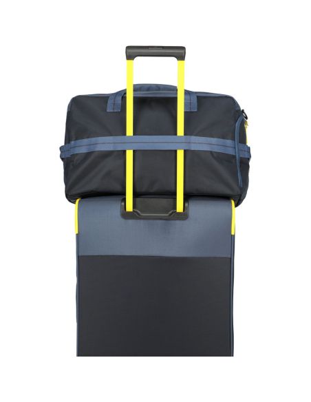 Een slimme feature is de geïntegreerde trolleyband aan de achterzijde, waarmee de tas eenvoudig over het handvat van een koffer kan worden geschoven. Zo wordt reizen comfortabeler en hou je je handen vrij.