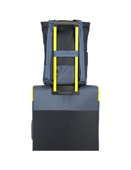 Handig detail is de trolleyband aan de achterkant, waarmee de tas eenvoudig over het handvat van een koffer geschoven kan worden, ideaal voor op de luchthaven of tijdens een stedentrip. De rugzak is gemaakt van stevig materiaal en afgewerkt met degelijke stiksels.