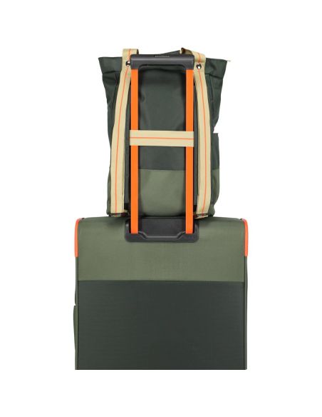 Handig detail is de trolleyband aan de achterkant, waarmee de tas eenvoudig over het handvat van een koffer geschoven kan worden, ideaal voor op de luchthaven of tijdens een stedentrip. De rugzak is gemaakt van stevig materiaal en afgewerkt met degelijke stiksels.